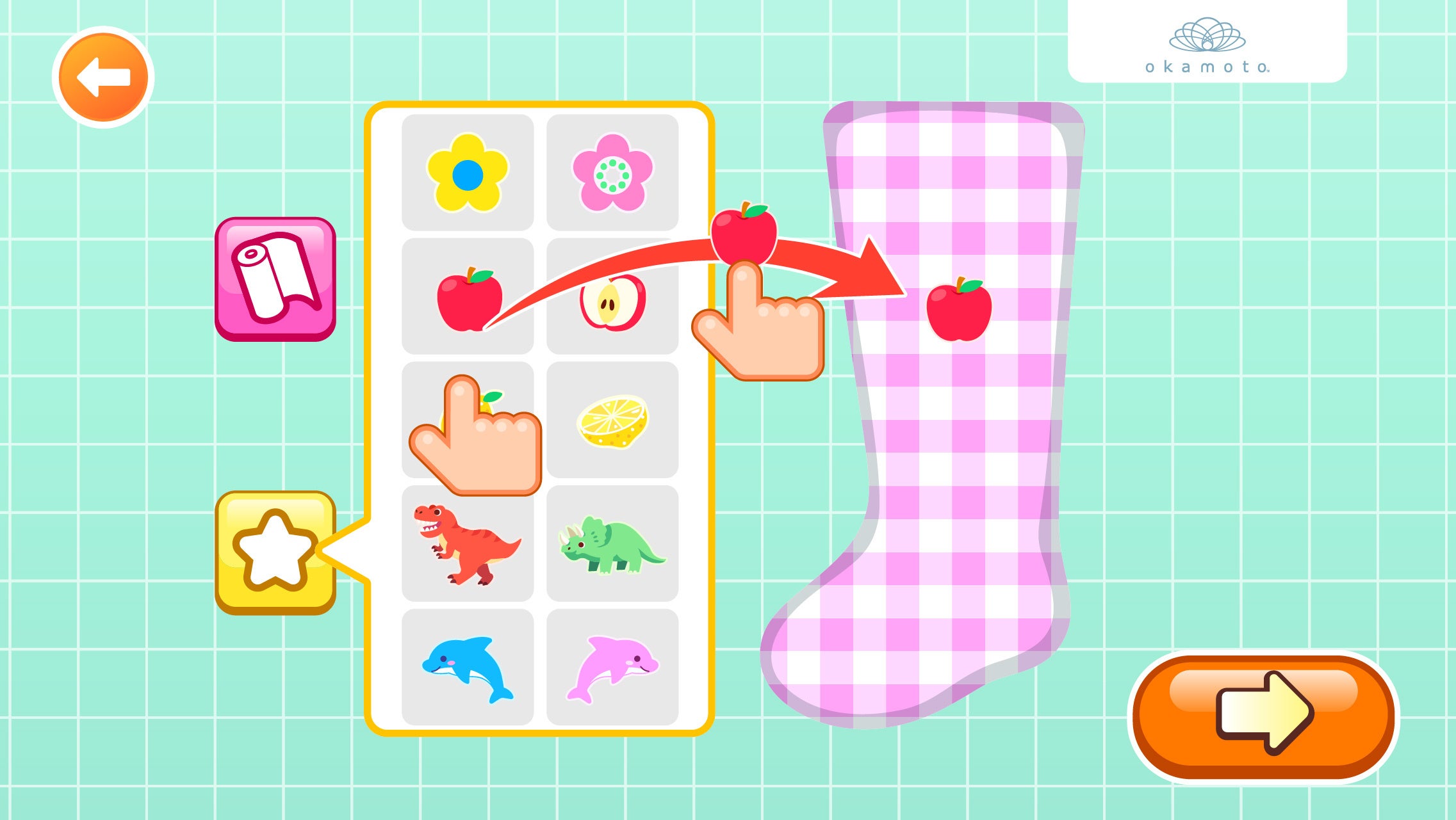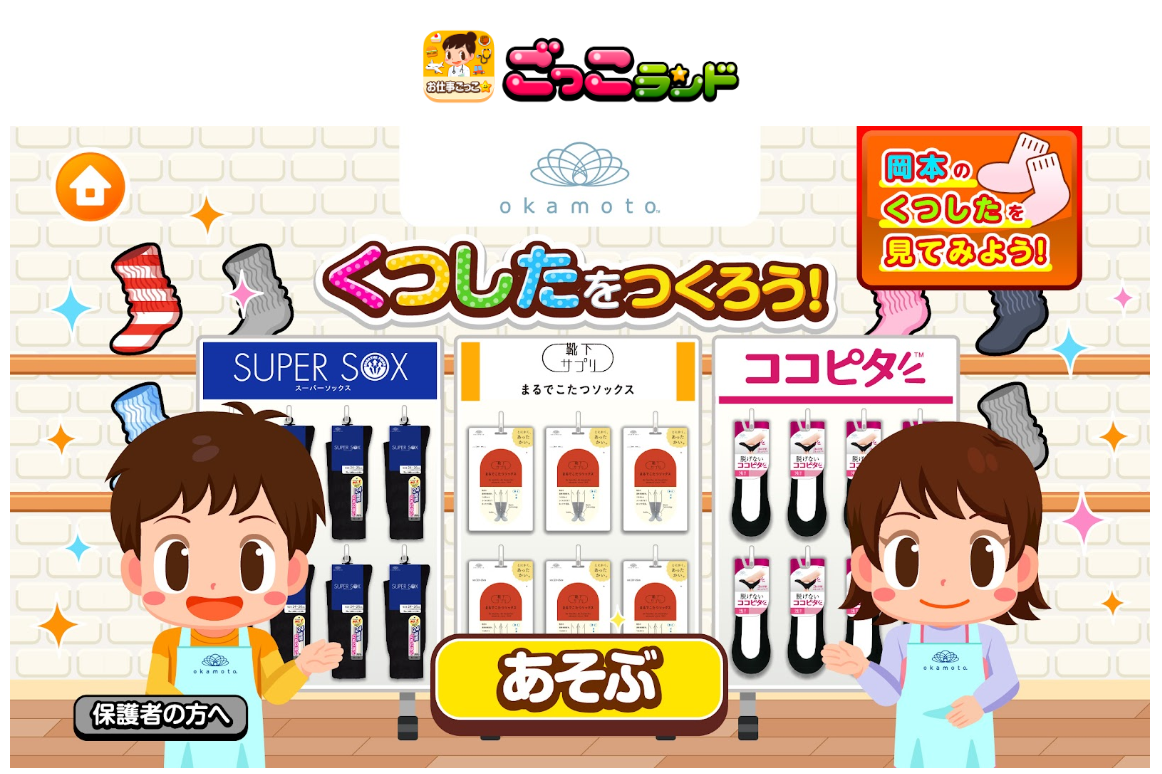 子ども向け社会体験アプリ『ごっこランド』に、靴下の岡本の新ゲーム「くつしたをつくろう!」が登場!