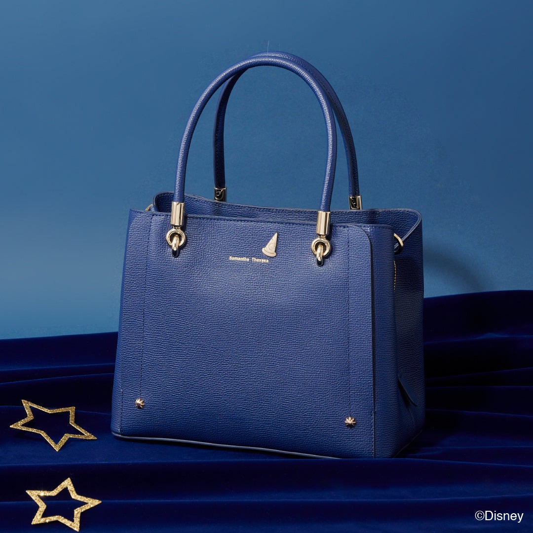 バッグ全体にネイビーカラーを使用し、フロントにはゴールドラメで描かれたモチーフやシルエットをデザイン。暗闇の中で魔法がかかる様子をイメージした世界観がポイント。『ファンタジア』の世界観をイメージした、ゴールドとネイビーの重なったフリルもデザインのポイント。