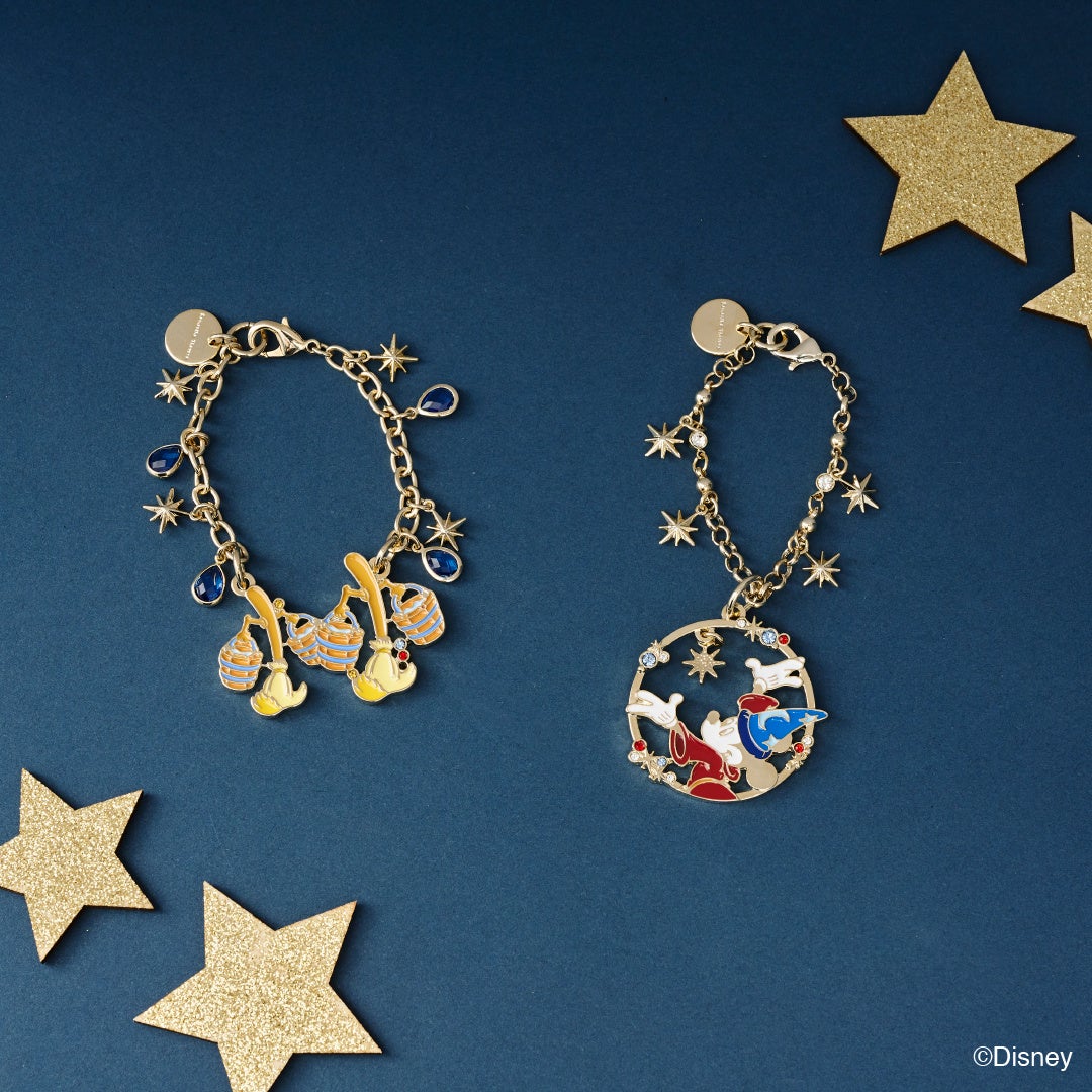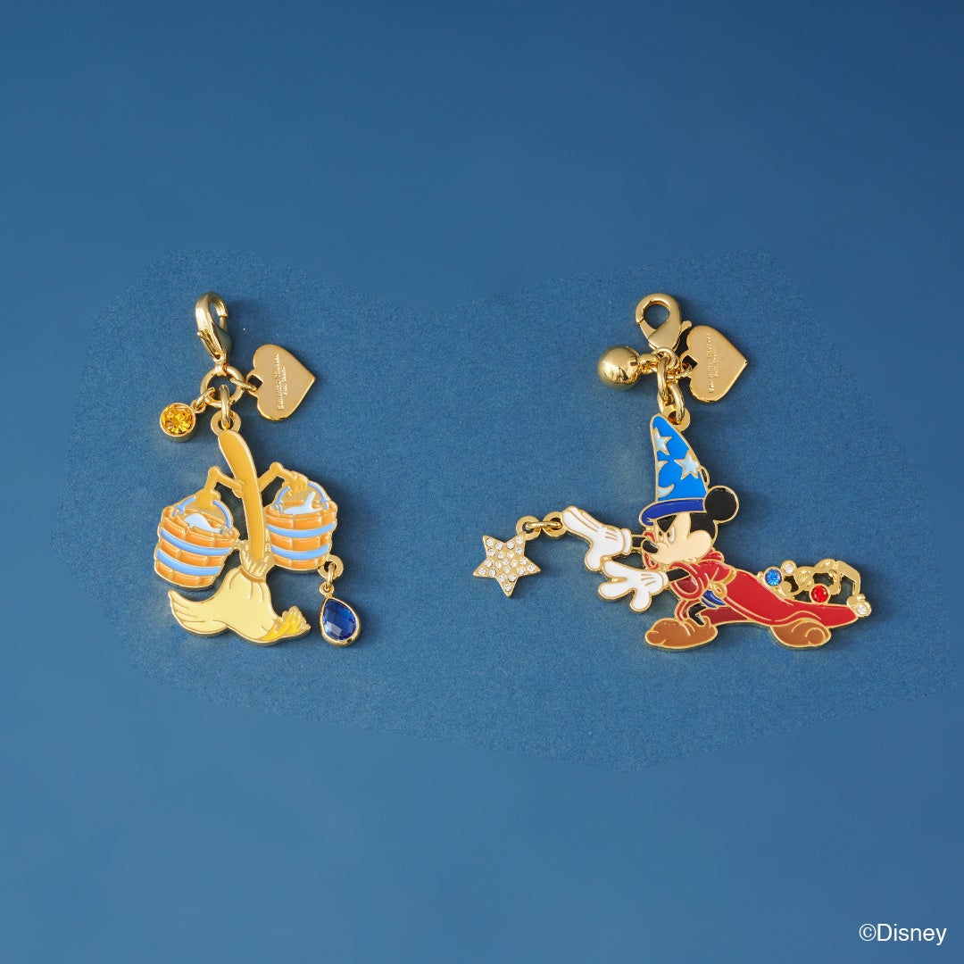 魔法使いの弟子「ミッキーマウス」と水汲みをしているほうきのアートがそれぞれのチャームにデザイン。『ファンタジア』のキラキラとした世界観をつめ込んだチャームをプラスワンで楽しんで。