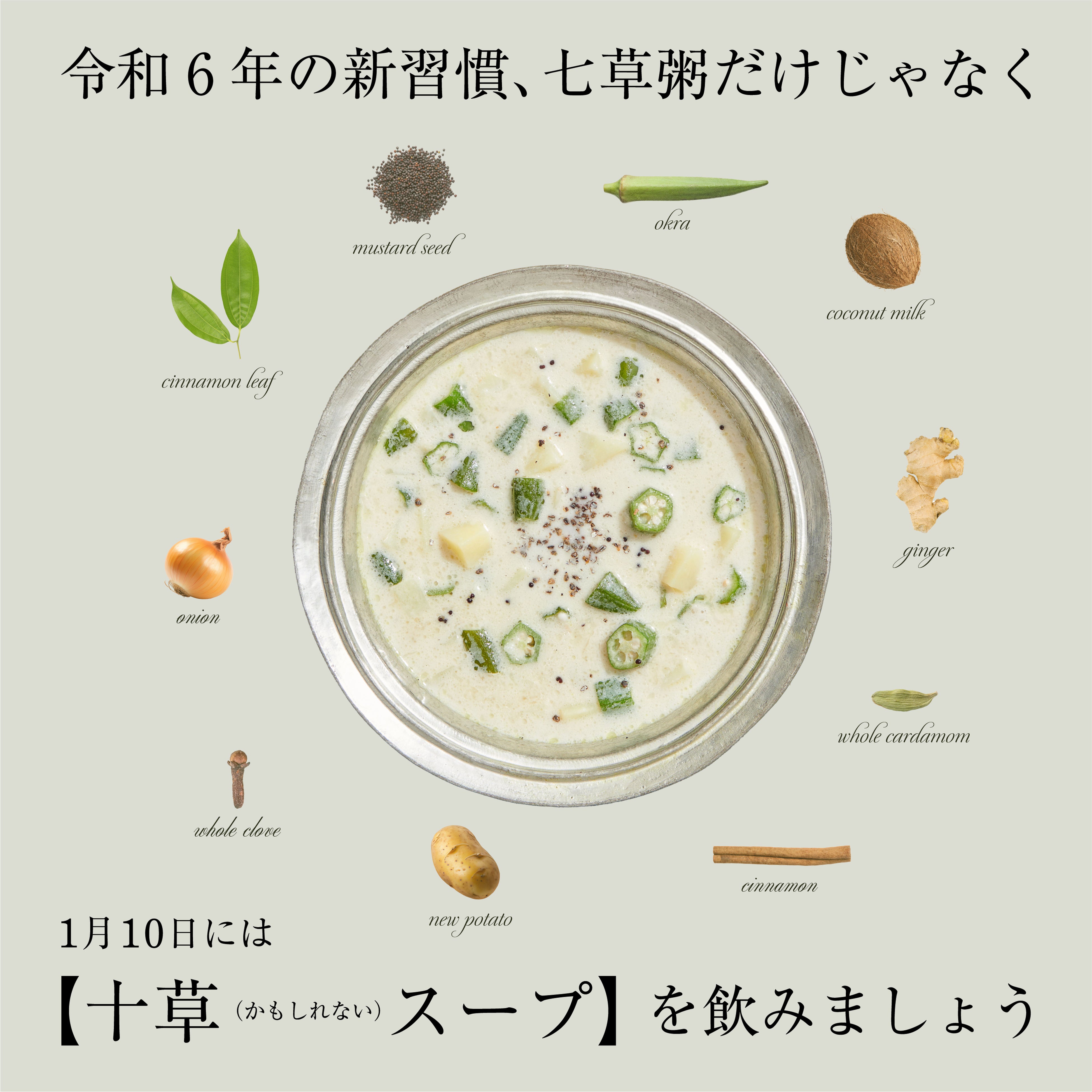 ウカがみなさんのカラダの内側からの健康を願って年始にオススメするのが、十草(かもしれない)スープ<PITTA>と二十一草(かもしれない)スープ<KAPHA>。