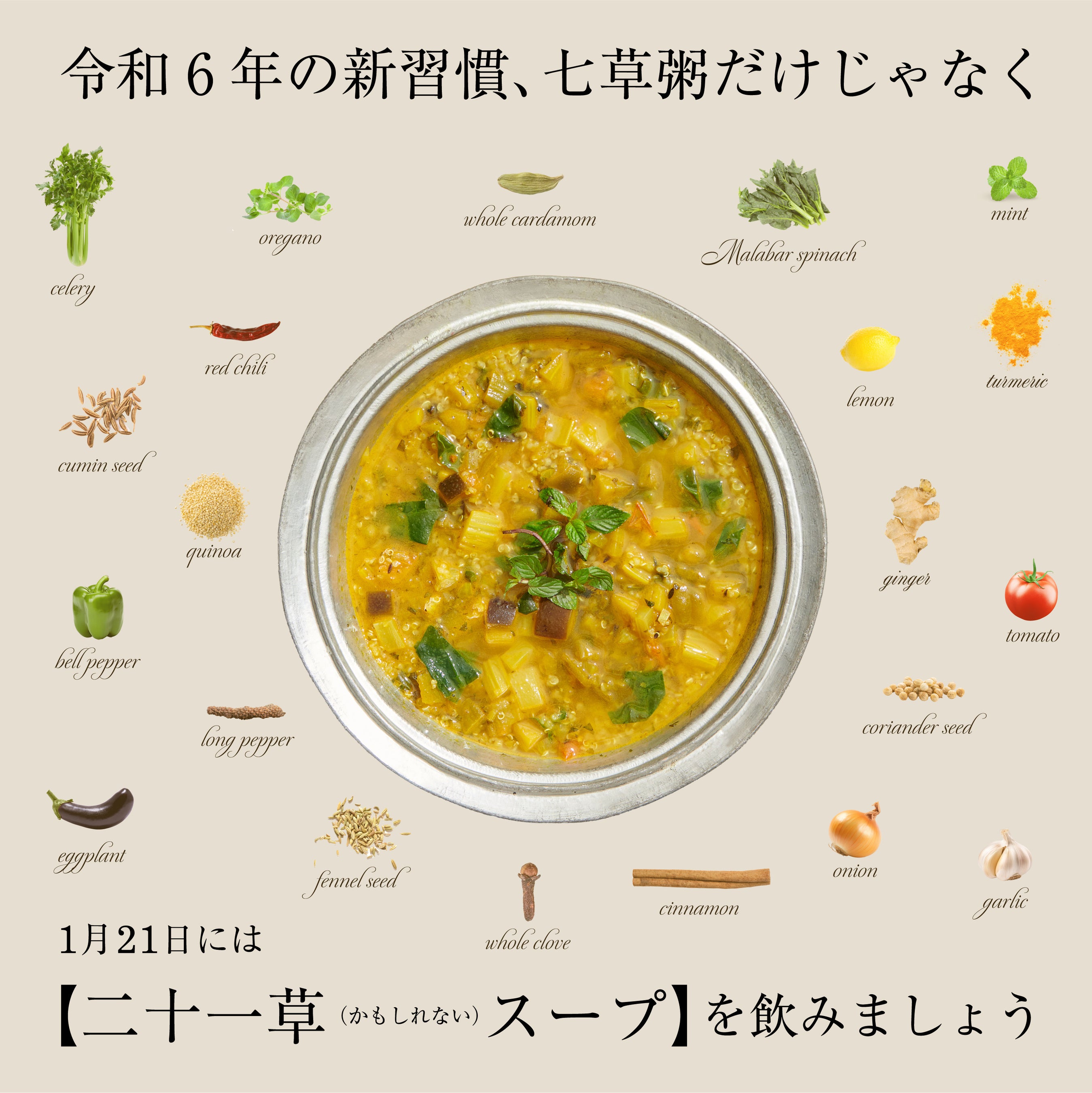 アーユルヴェーダサマースープ(4個set/6個set)を「二十一草」にちなんで21%オフで販売します。