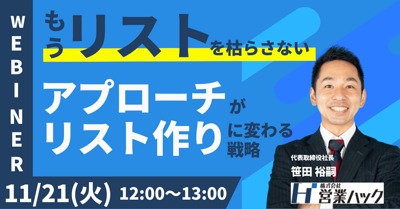 リストを枯らし続けるテレアポから卒業!アプローチ=良質なリスト作りに繋げるコツを徹底解説します!《11/21(火)12:00~無料オンラインセミナー》