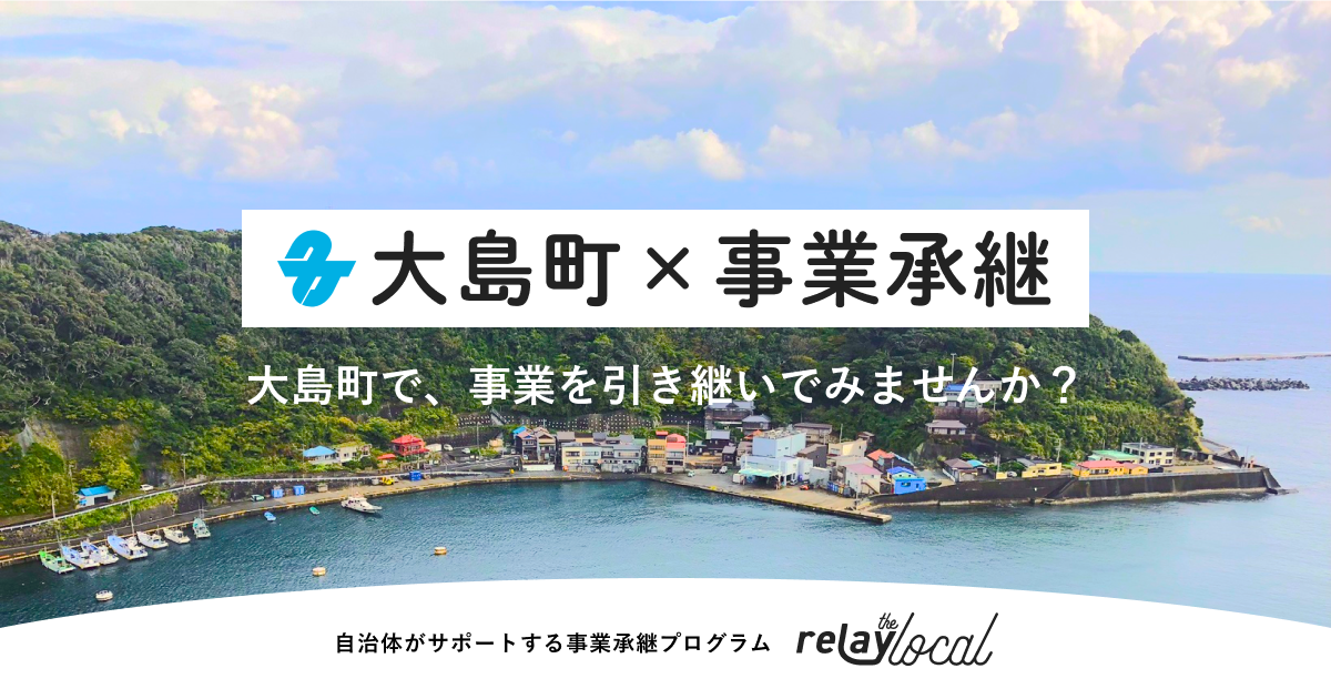 このたびrelayは大島町、大島町商工会、七島信用組合と連携し、移住・定住を伴う第三者事業承継の推進に向けて、共に取り組んでまいります。連携の第一弾として、大島町に特化した後継者募集案件を掲載した「relay the local 大島町」を開設しました。今後、大島町に相談が寄せられる後継者不在事業者の情報をrelayに提供いただき、「relay the local 大島町」への掲載を行います。