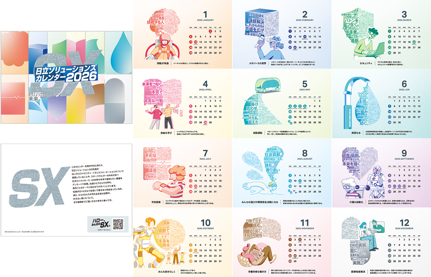 株式会社日立ソリューションズ(本社:東京都品川区、取締役社長:森田 英嗣/以下、日立ソリューションズ)は、お客さまをはじめとするステークホルダーの皆さまとともにサステナビリティ・トランスフォーメーション(SX)について考えるきっかけを創出し、協創へとつなげ、企業と社会のSXを加速させることをめざして、2026年カレンダーを制作しました。