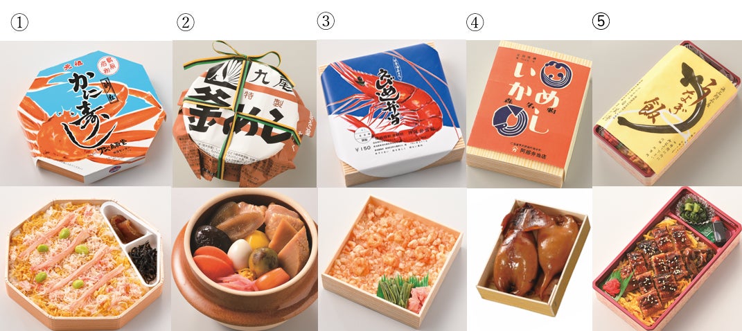 <第60回大会概要> ◇47の駅弁調製元が実演で出店。実演・輸送あわせて約350種類の駅弁が登場。 ◇食べ進めるごとに味わいが変化!「6層ミルフィーユ駅弁」 ◇駅弁大会名物企画が復活! 「至高の美味 ブランド牛対決~近江牛×佐賀牛×神戸牛~」 &「海のごちそう頂上対決~カニ×ウニ×アワビ~」 ◇食べ応え抜群!シェアしても楽しい!「新幹線旅グルメ6マス弁当」 ◇「がんばれ!ローカル線」のと鉄道 ◇観光列車の駅弁がやってくる!「りゅうぐうの舞」 ◇温めて味わう“駅弁×ご当地ラーメン”のコラボレーション ◇第1回大会販売当時の掛け紙を復刻!(販売個数ベスト5のみ限定で復刻) ◇そのほか、スイーツから惣菜までそろう「うまいもの」は 83店が出店 |