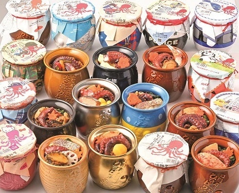 真だこと、穴子そして、季節の野菜を、独自に焼き上げた蛸漁に使用する蛸壺風の陶器に盛り付けた味と容器、両方でお楽しみいただける人気駅弁。人気キャラクターをはじめ鉄道や兵庫県警などさまざまな企業や団体とコラボレーションした20種類のひっぱりだこ飯が大集結します。
