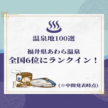 福井県の誇る名湯「あわら温泉」が、観光経済新聞社が発表する「温泉地100選」にて、昨年の23位から大きくジャンプアップし、中間発表で堂々の6位にランクインしました!