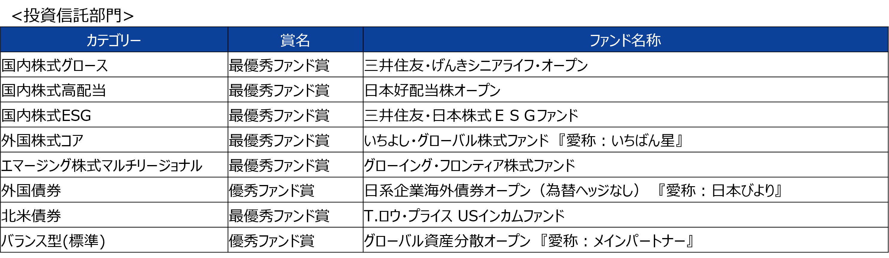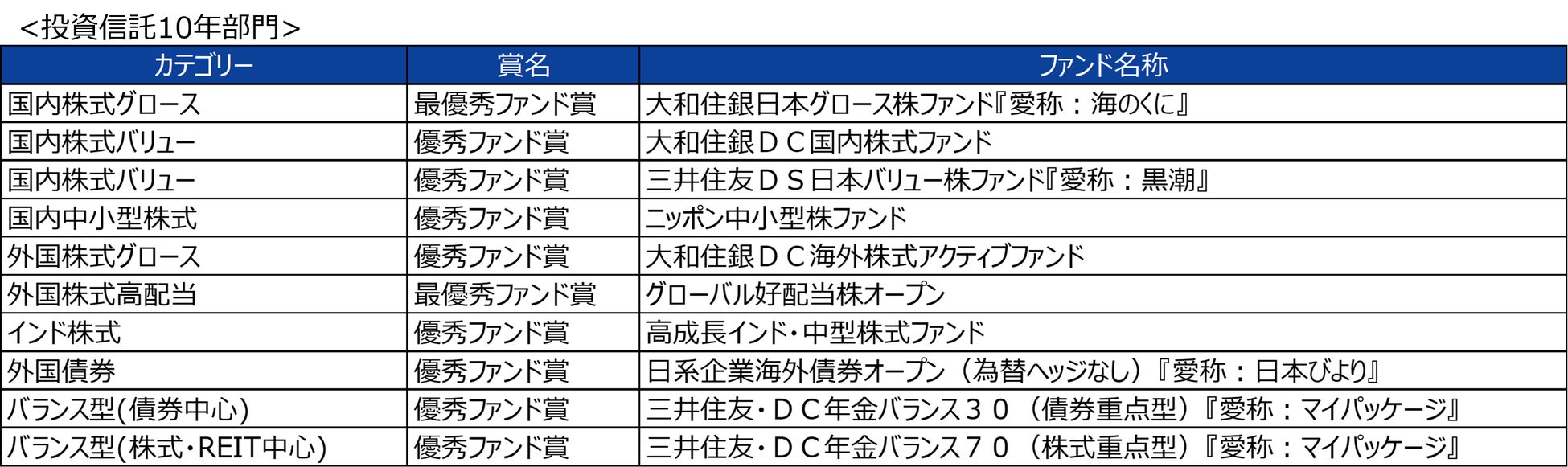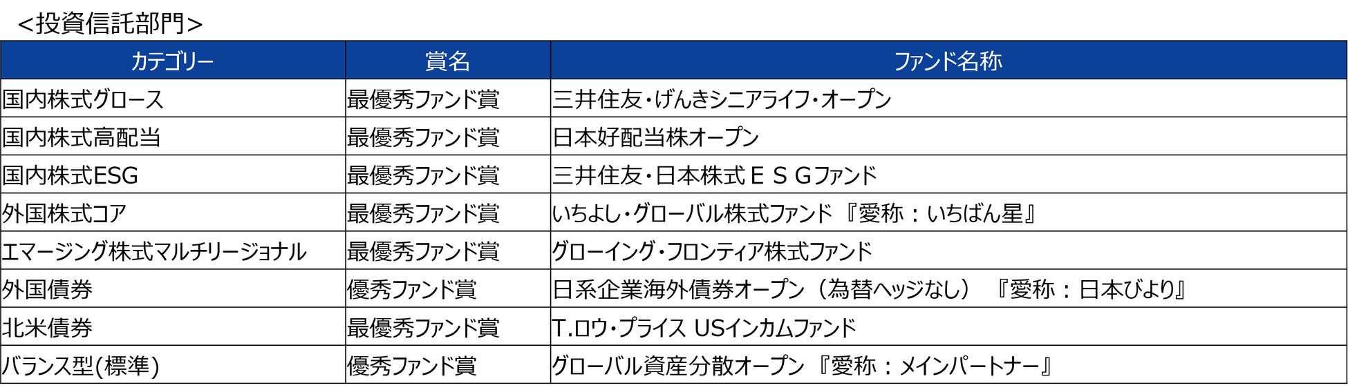 当社では、今回の受賞を励みに、今後とも一層の商品開発力と運用力の向上を図り、お客さまの資産形成に貢献してまいります。