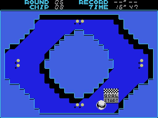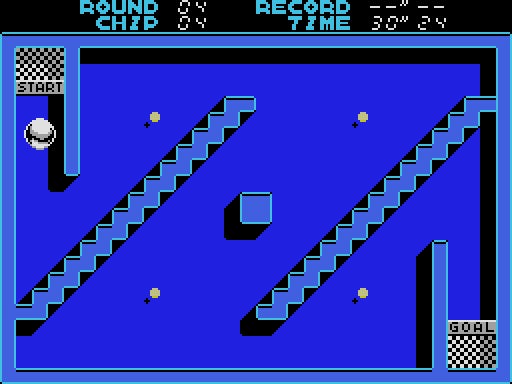 本作は1988年にリリースされたアクションゲーム。プレイヤーはボールを操作して、マップ上に配置された黄色いドットをすべて獲得しながらゴールを目指します。しかしパッと見では単純に見える本作も、プレイには制限時間があったり、ボールには慣性が働いていたりするので緊張感も抜群! 攻略には、素早い的確な操作が求められます。