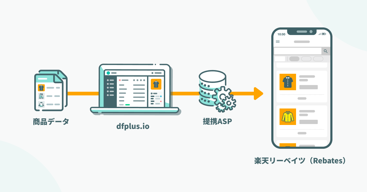 これにより、EC事業者様は、dfplus.io上の簡単な操作のみで、「楽天リーベイツ(Rebates)」のご利用に必要な商品データ(商品名、価格、商品URLなど)を連携できるようになりました。