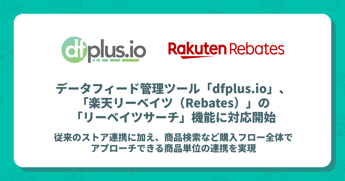 データフィード管理ツール「dfplus.io」、「楽天リーベイツ(Rebates)」の「リーベイツサーチ」機能に対応開始