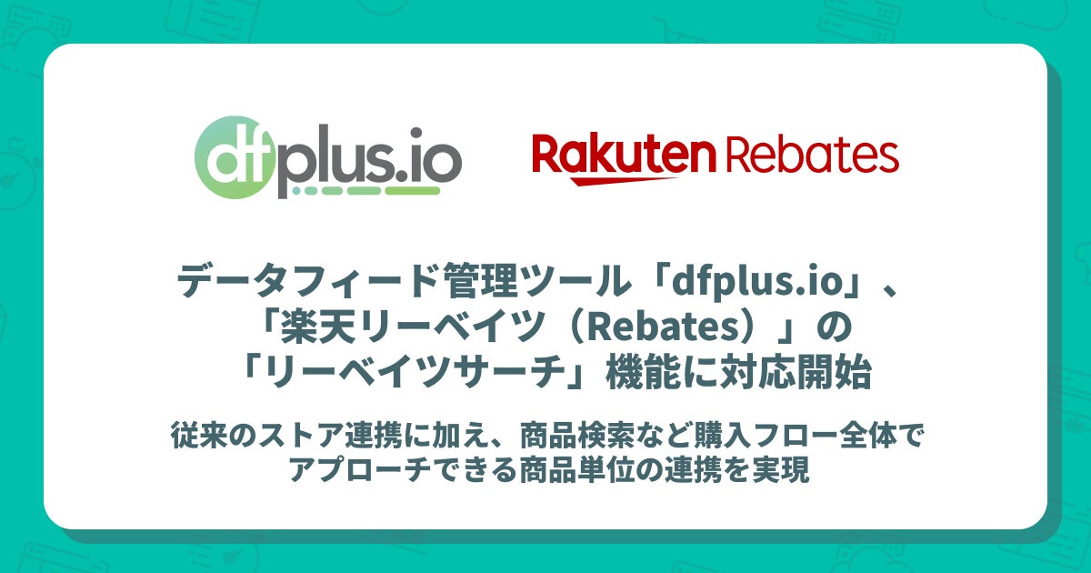 この度、データフィード管理ツール「dfplus.io」は「楽天リーベイツ(Rebates)」の「リーベイツサーチ機能」との連携を開始しました。