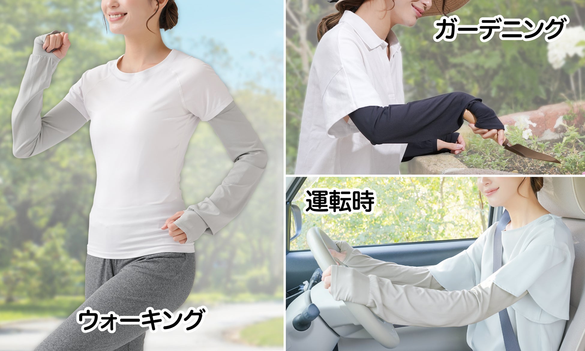 UVカット率が高く、UPF50+で運転時や買い物、ガーデニング、お出かけ中も日焼け対策ばっちり!
