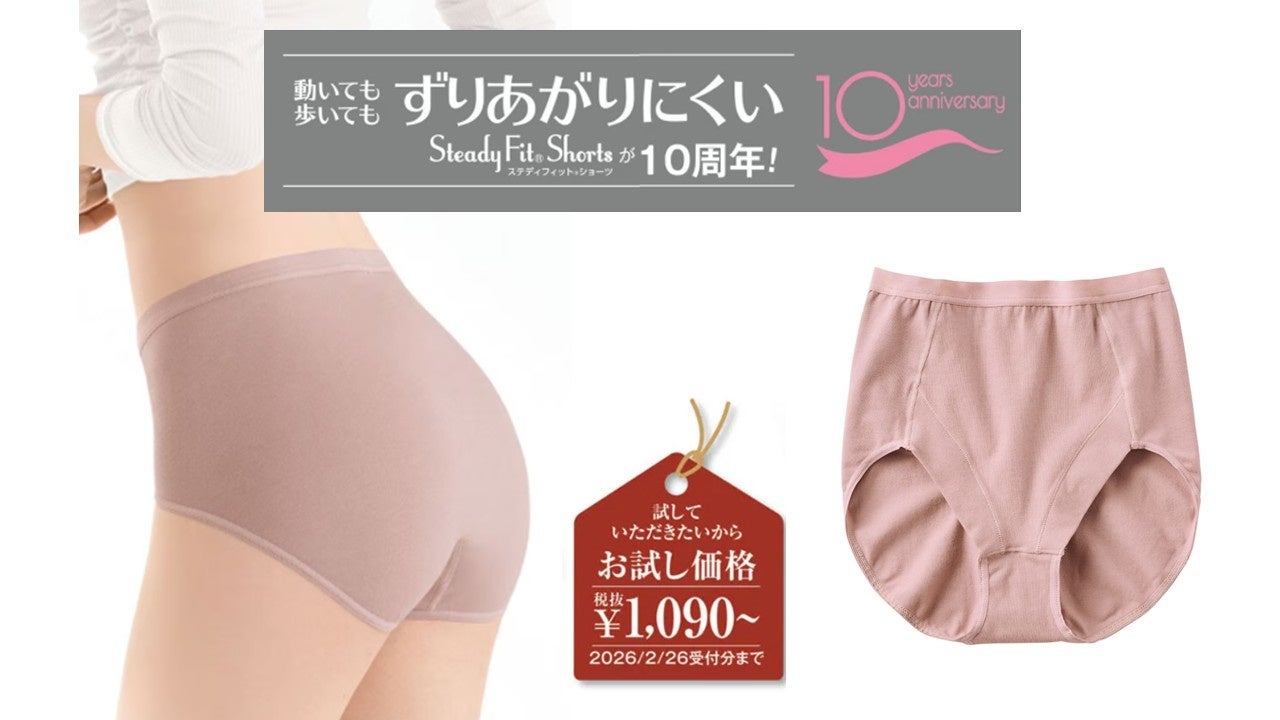 株式会社セシール(本社:東京都新宿区)は、シリーズ累計販売枚数29万枚を突破(2025年8月末現在)した「ステディフィット®ショーツ」の発売10周年を記念し、新タイプ「ステディフィット®ショーツ(はきこみ丈深め・シンプルゴムタイプ)を11月27日に販売開始しました。