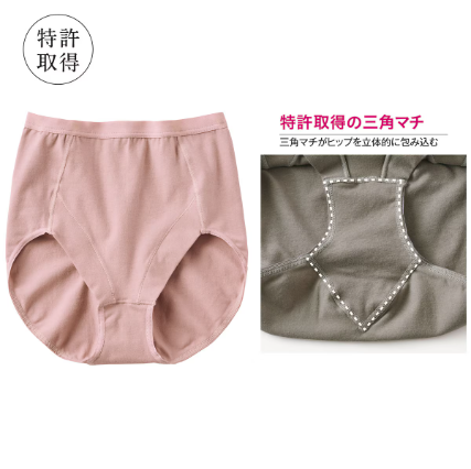 お客様からのニーズが高まっているシンプルデザインが新登場。特許取得の三角マチがヒップを立体的に包み込んでずり上がりにくい設計で、ヒップのはみ出しが気になる方におすすめです。