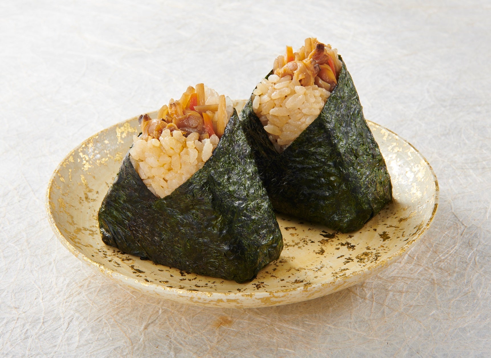 商品紹介:江戸甘味噌と生姜であっさり仕上げた「あさりの深川煮」と、「胡麻油の香りの効いたきんぴら牛蒡」をだし飯でむすびました。