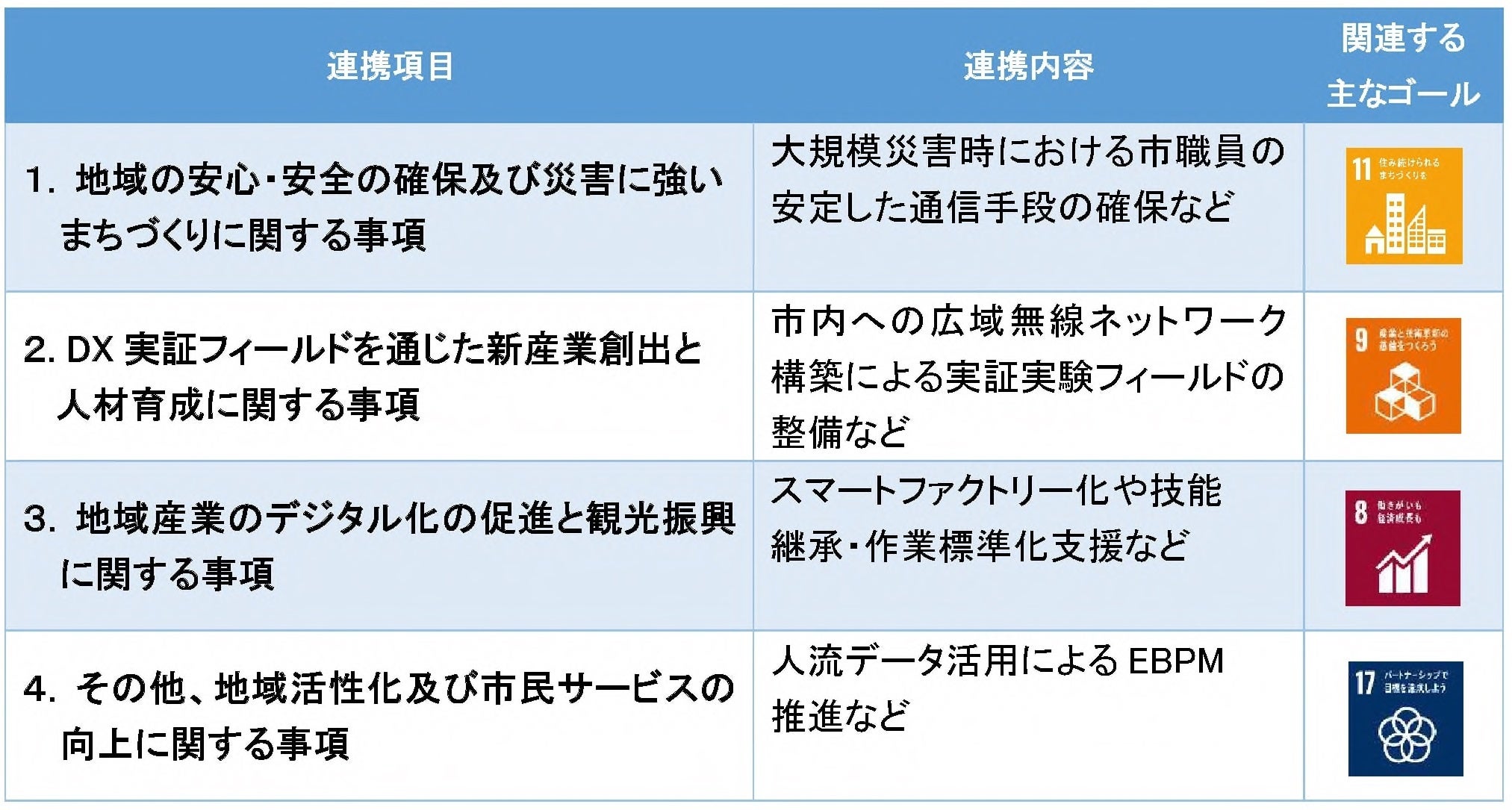 【直方市×PicoCELA株式会社 包括連携協定の内容】