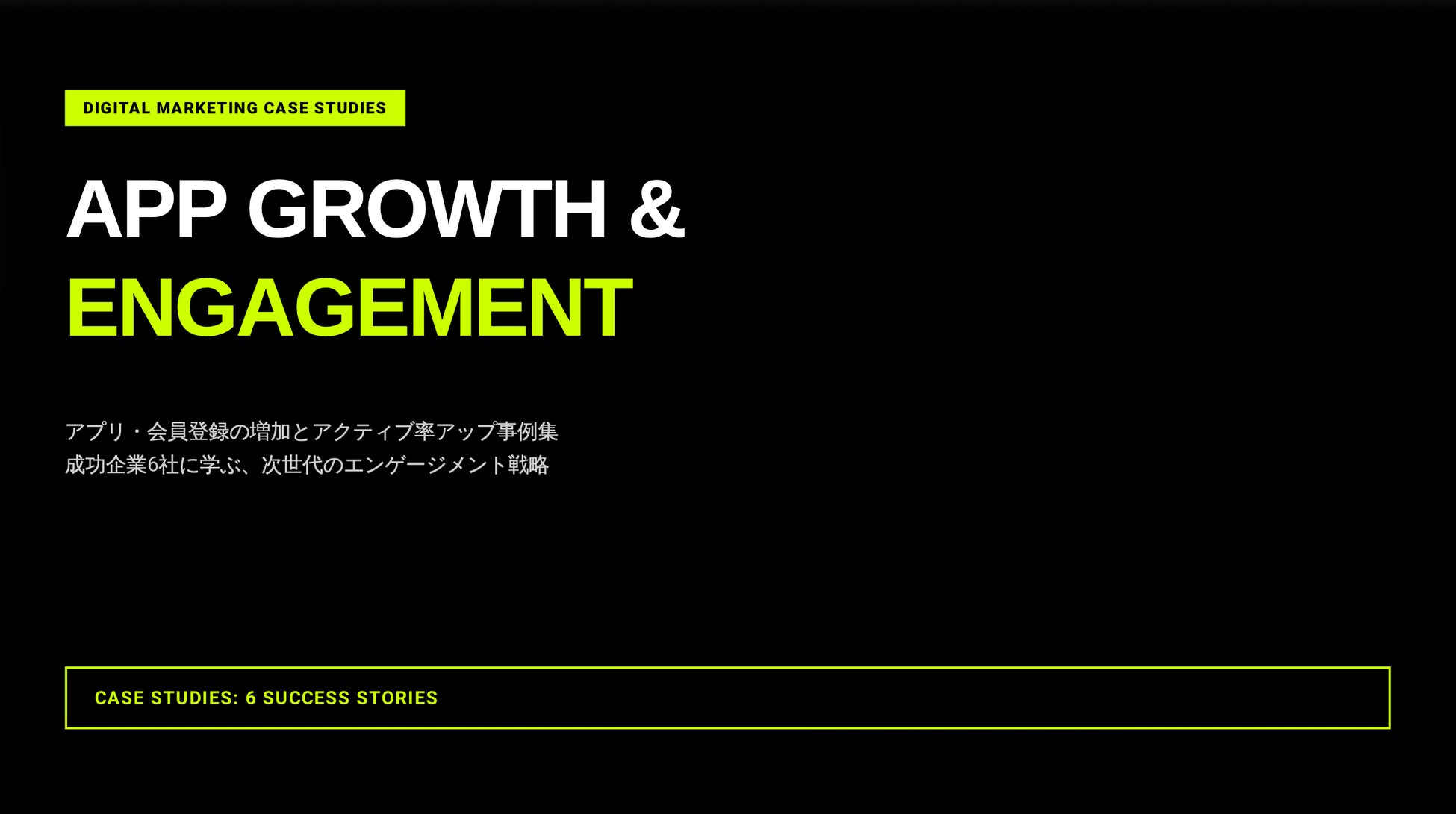 アプリや会員システムの登録増加、継続利用(アクティブ率)向上を目的に、診断・オンラインガチャなど「参加型コンテンツ」を活用した成功事例6社の取り組みを1冊に整理。成果指標と導線設計のポイントを、ユースケースとともに紹介しています。
