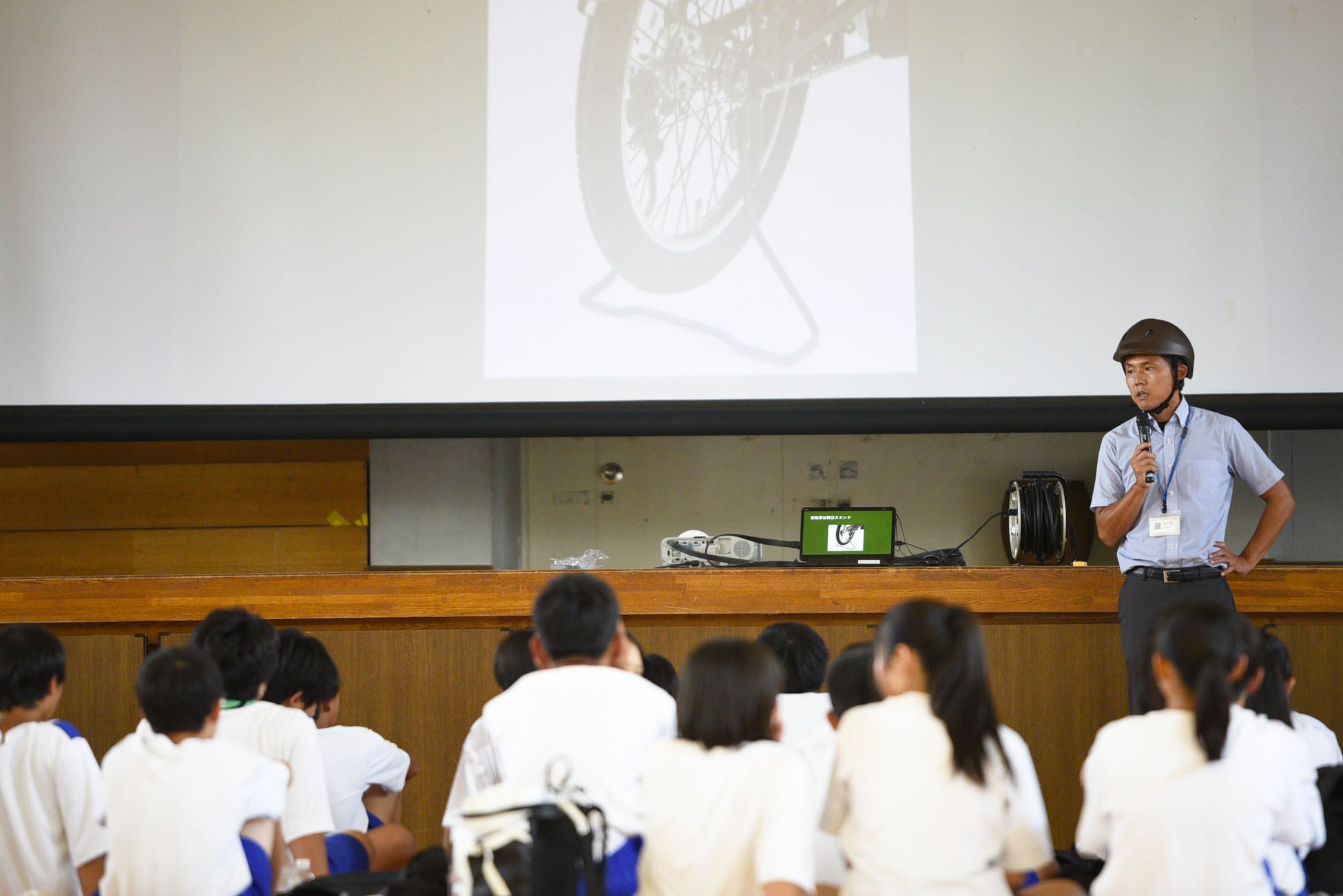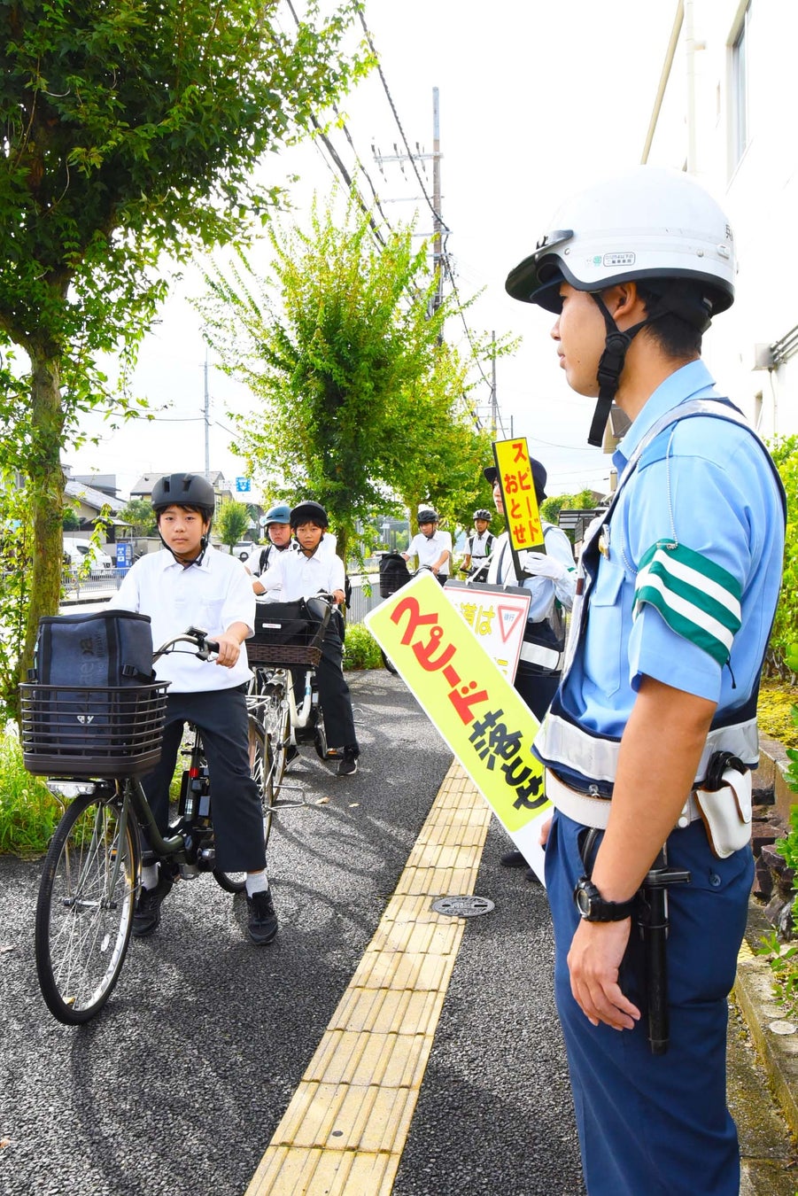 自転車事故の防止に向けても、それぞれの中学校の通学路上で街頭啓発を行っています。