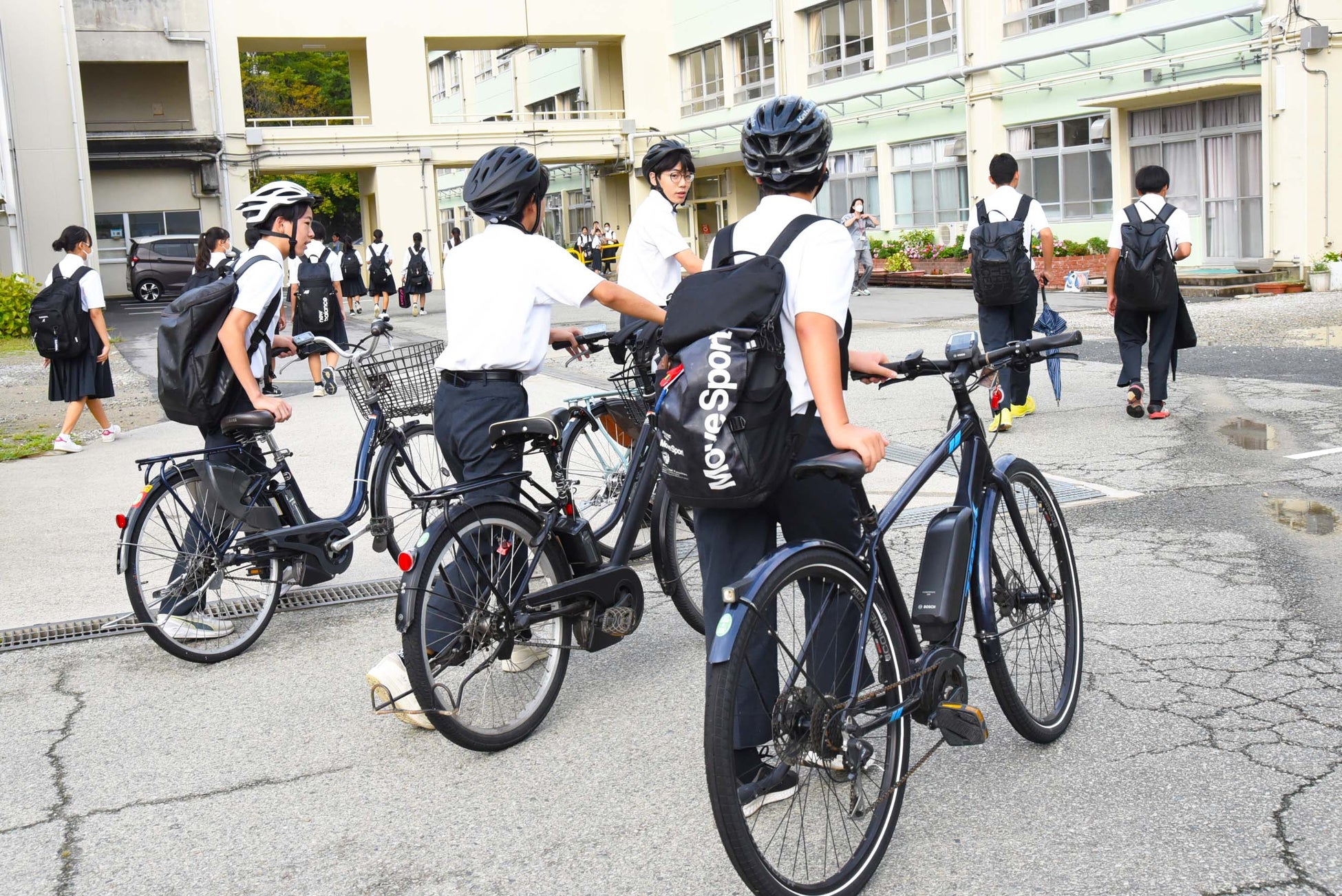 保護者に対しても自転車保険の加入、自転車防犯登録、ヘルメット着用の徹底を通知し、安全な通学に向けて対応を行っています。