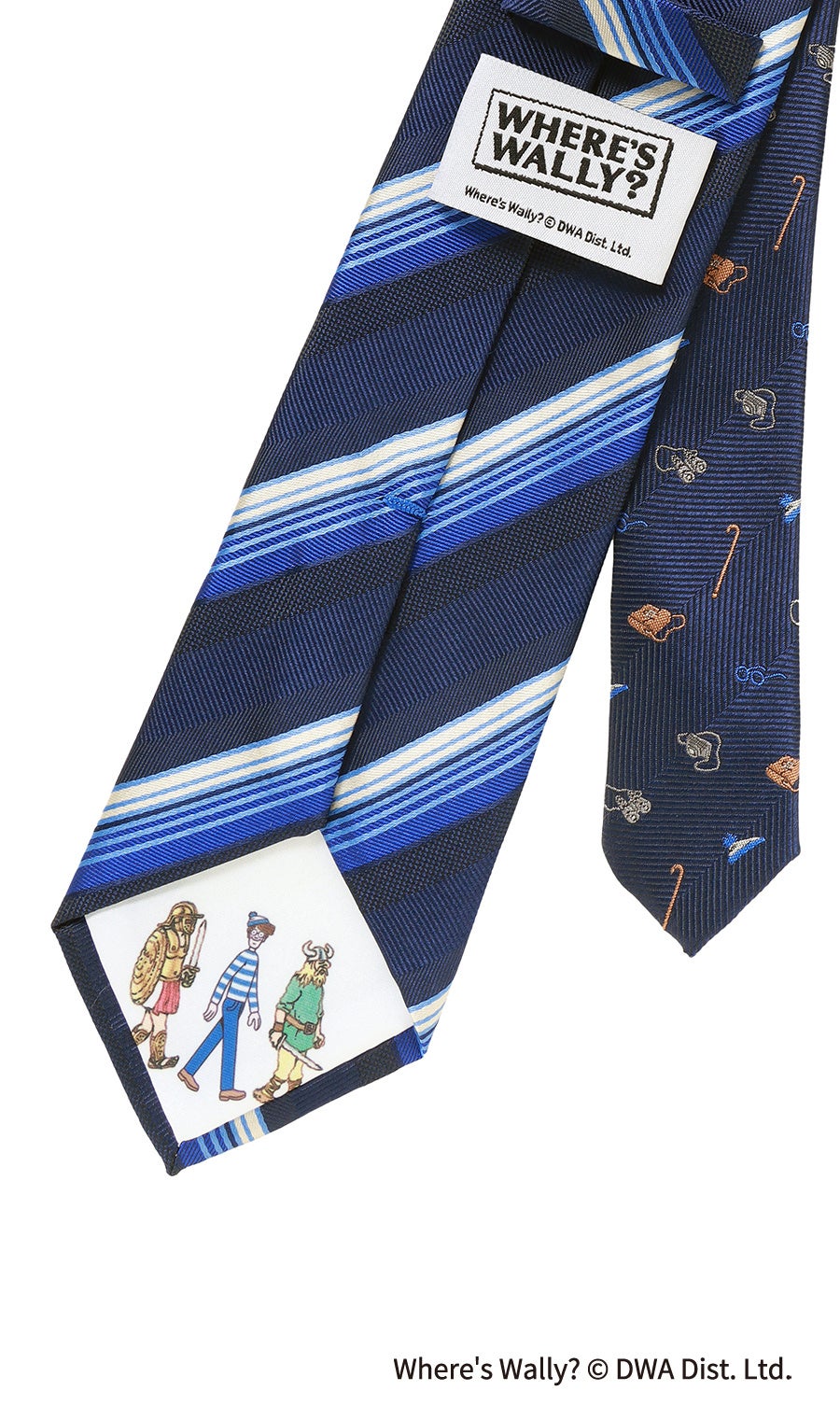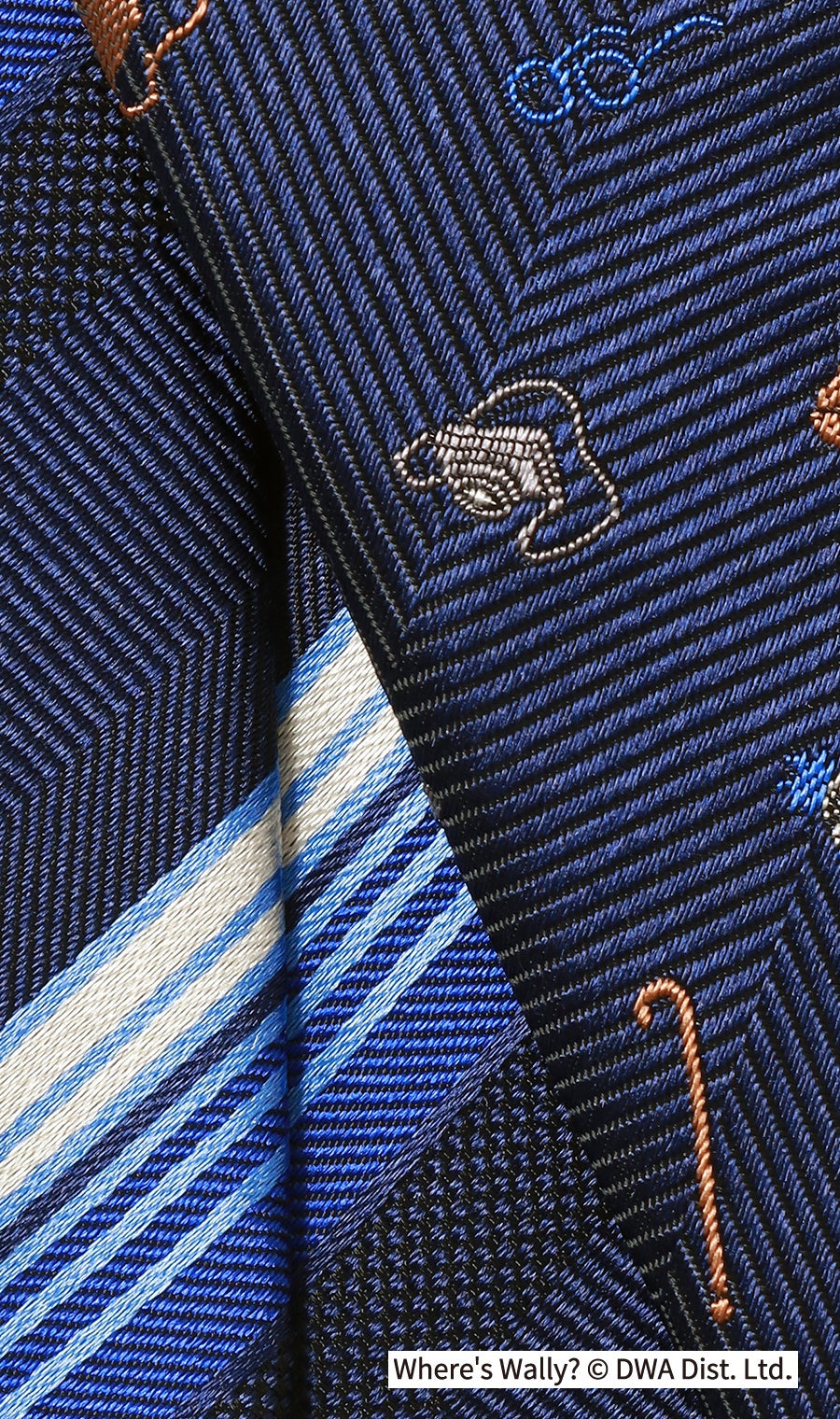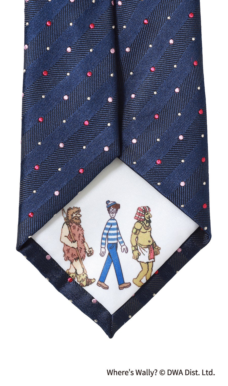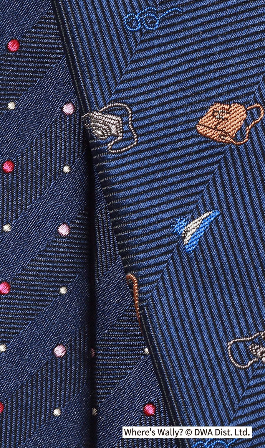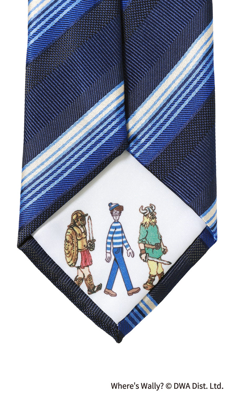 本企画は、前回※に続き青ボーダーの特別仕様となったウォーリーが登場し、絵本の世界観をネクタイとハンカチで表現しました。ネクタイの小剣(幅の細い方)に描かれたバッグや帽子などのアイテムと、大剣先の裏地に描かれている人物をハンカチのデザインの中から探しだす仕掛けとなっています。シリーズ「WHERE‘S WALLY NOW?」のストーリーをモチーフにしており、戦国時代や海賊時代など全12種類の旅シーンから見つけ出すといった絵本そのままのワクワクを感じることができます。