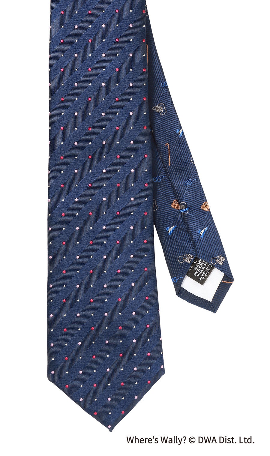 ネクタイの表地は、ネイビーやワインレッドなどビジネスシーンでも定番な色柄を採用し、普段でも身に着けやすいデザインにしています。遊び心ある仕掛けがウォーリーファンの方はもちろんのこと、食事会や宴席での話題など、幅広い楽しみ方ができる特別仕様のオリジナルネクタイです。
