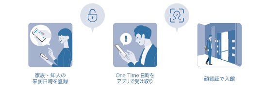 さらに、One Time(鍵貸し)機能により同居しない家族や知人にも鍵を貸し出すことができ、より安全で快適なスマートなマンションライフを実現します。