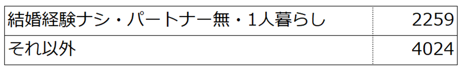 ・本調査:結婚経験が無く・現在付き合っているパートナーがおらず・一人暮らしをしている人