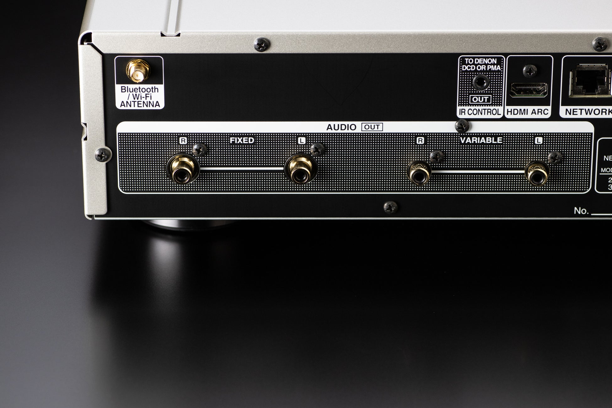 音声出力端子は固定出力と可変出力の2系統を装備しており、固定出力には通常のプリメインアンプを、可変出力にはパワーアンプやパワーアンプダイレクト入力を備えるプリメインアンプなどに接続することができます。