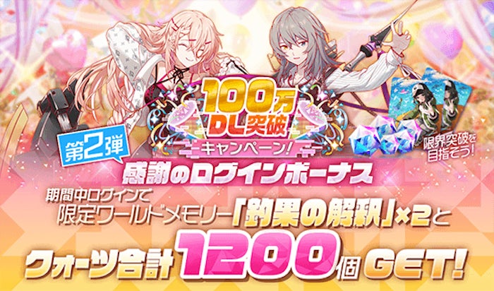 ・100万DL突破記念!感謝のログインボーナス第2弾を開催中!