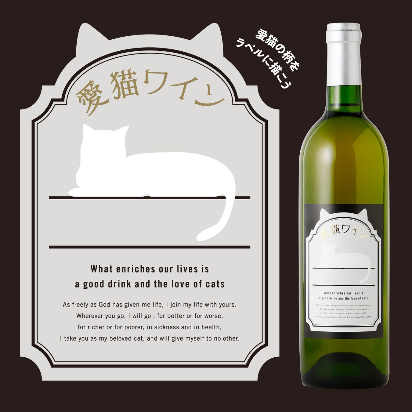 猫好きに贈る甘口の白ワインです。ラベルの猫に愛猫の柄を描けば、あなただけのオリジナルボトルに大変身します。