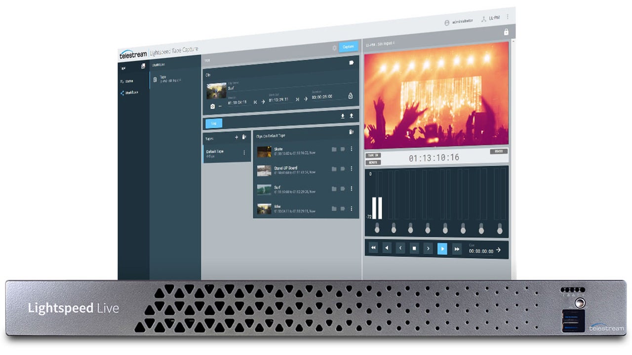 Lightspeed Live Capture は、Lightspeed Live サーバー上で動作するソフトウェアです。撮影現場、ポストプロダクション、放送ワークフローで使用する高解像度ファイルやプロキシファイルをインジェストします。RS422 VTR コントロールによるテープインジェストの自動化も行えます。