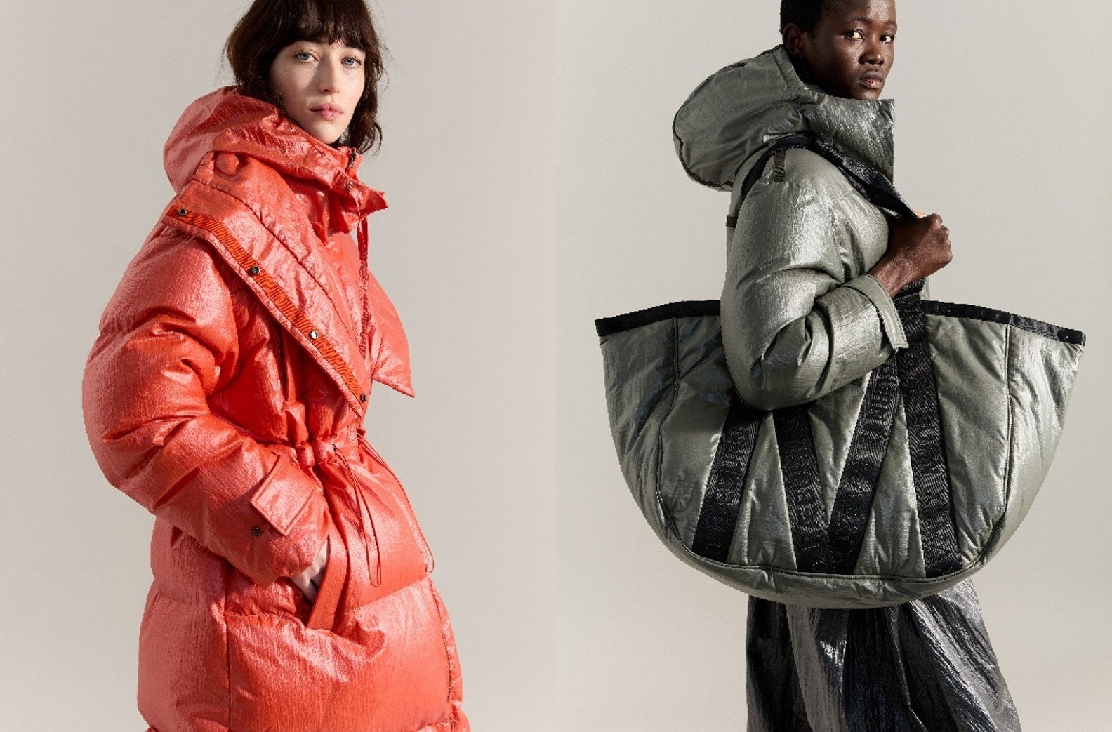 本コレクション「SNAP. PACK. DEPLOY.」では、マックスアンドコーとRÆBURNが共通言語を共有しながらも、両ブランドの対照的なエレメントを融合。マックスアンドコーのアイコンであるシグネチャーアウターは、RÆBURNの視点を通して再解釈されています。ワックス加工素材やパラシュートを想起させるボリューム、ミリタリーのディテール特徴で、カーキ、ストーン、ブラックといった抑制の効いたカラーパレットに、鮮烈なオレンジやホットピンクがアクセントとして加わります。“あらゆる状況に対応する”という姿勢のもと、「SNAP. PACK. DEPLOY.」は汎用性、動きやすさ、そしてタイムレスなデザインの価値を掲げ、コレクション名そのものがコンセプトを物語ります。