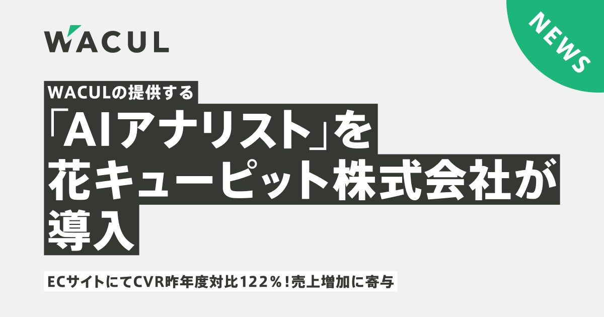 データと知⾒を核に、戦略から実⾏までマーケティングDXを⼀気通貫で⽀援する株式会社WACUL(本社:東京都千代⽥区、代表取締役社⻑:⼤淵 亮平、証券コード:4173、読み:ワカル、以下当社)は、 花キューピット株式会社(住所:東京都品川区、代表取締役社長:𠮷川 登)が「AIアナリスト」を導入し、花キューピットのECサイトにおいてCVRが昨年度対比122%に改善し、売上増加に寄与したことをお知らせします。