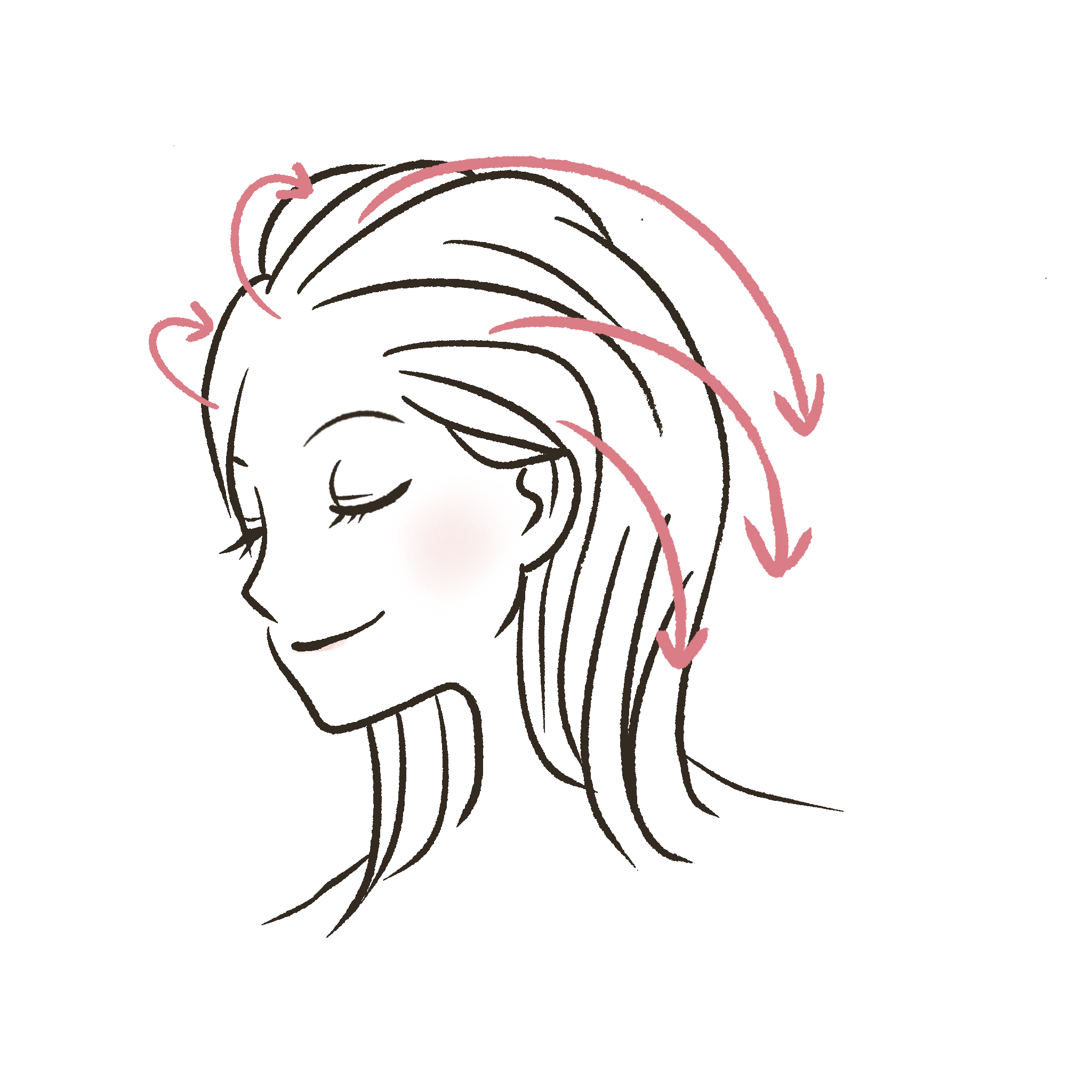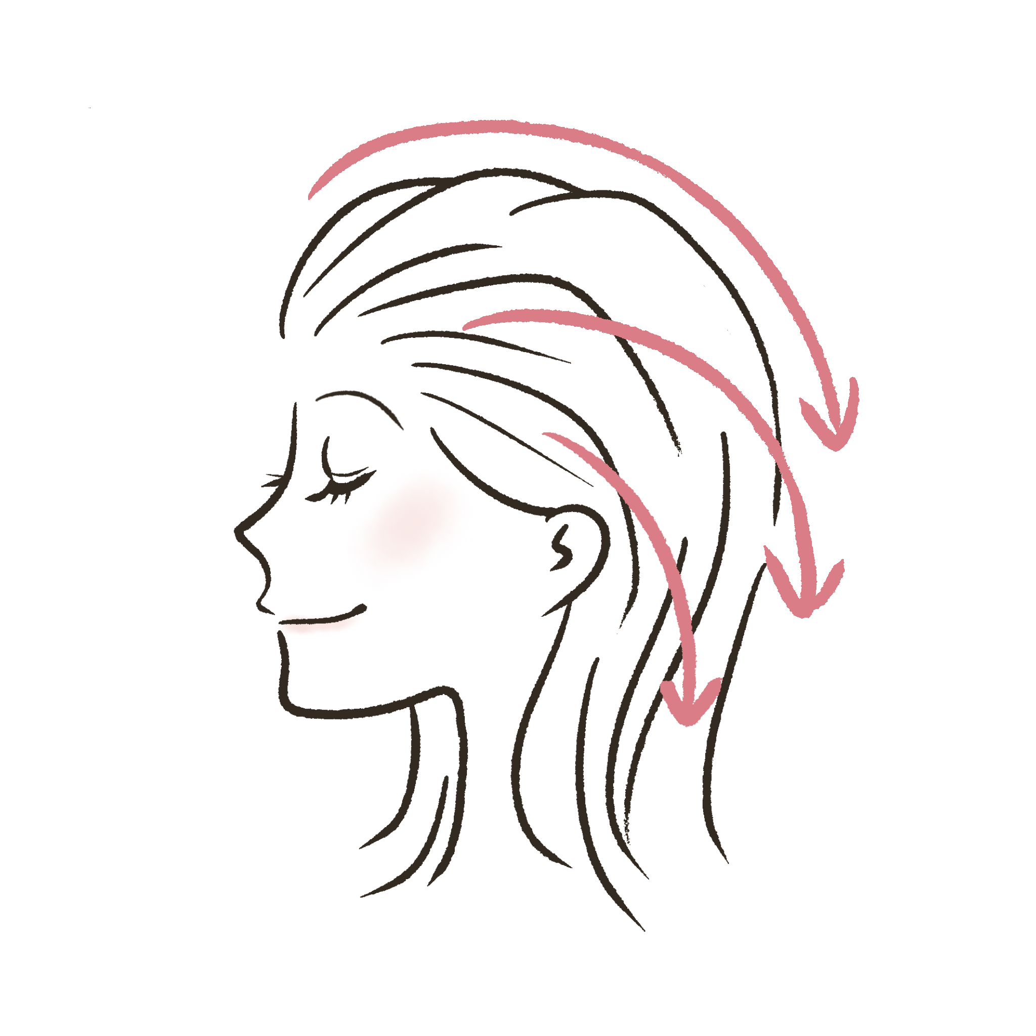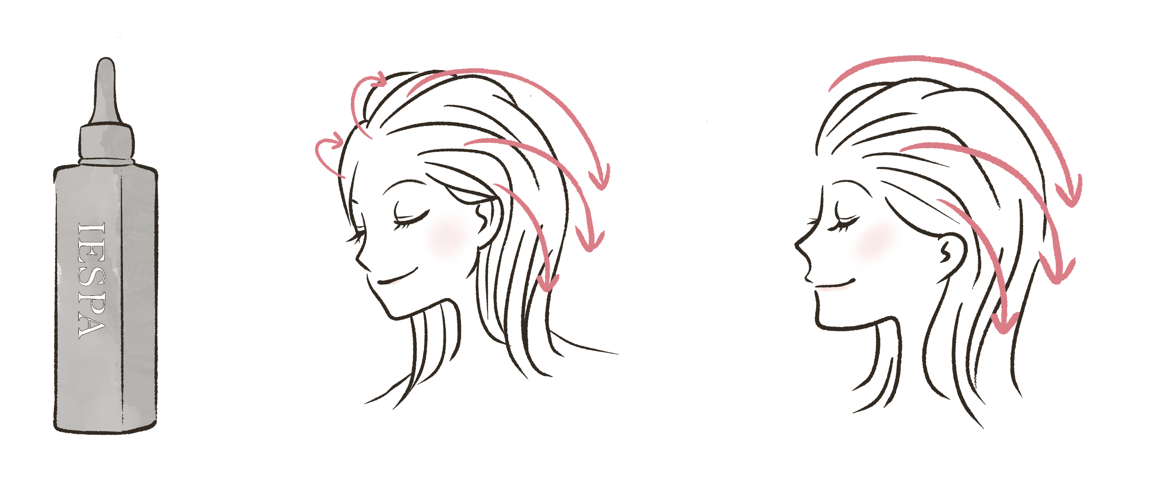 3. 軽く湿らせた頭皮全体に線を引くように塗布し、頭皮を揉み上げるようにマッサージしながら全体になじませ、5~10分置きます。