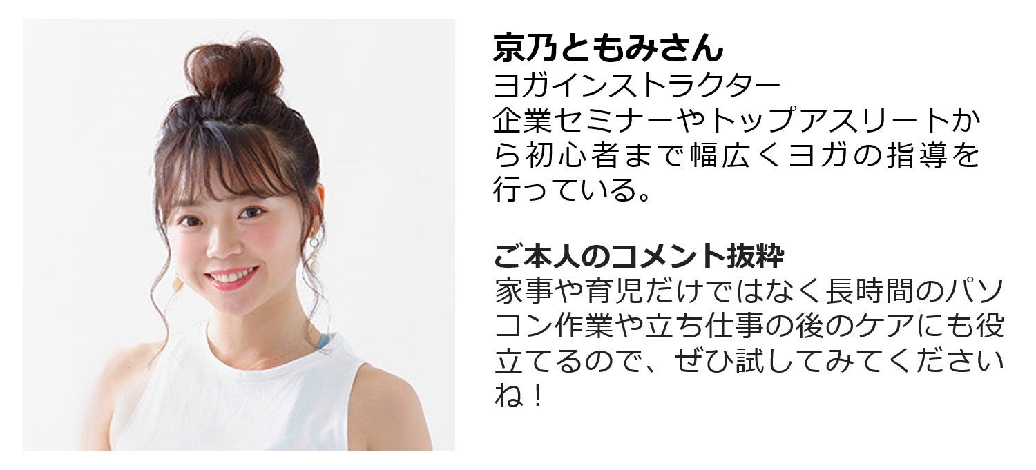 今回、芸人でもありプロストレッチトレーナーとして活動されている山田BODYさんと、著書「働くみんなの1分すぐ楽ヨガ」を出版し、トップアスリートの指導なども行っているヨガインストラクターの京乃ともみさんという、メディアでも活躍中の人気トレーナー2名監修の「おうちで簡単ストレッチ」How To動画を公開いたしました。