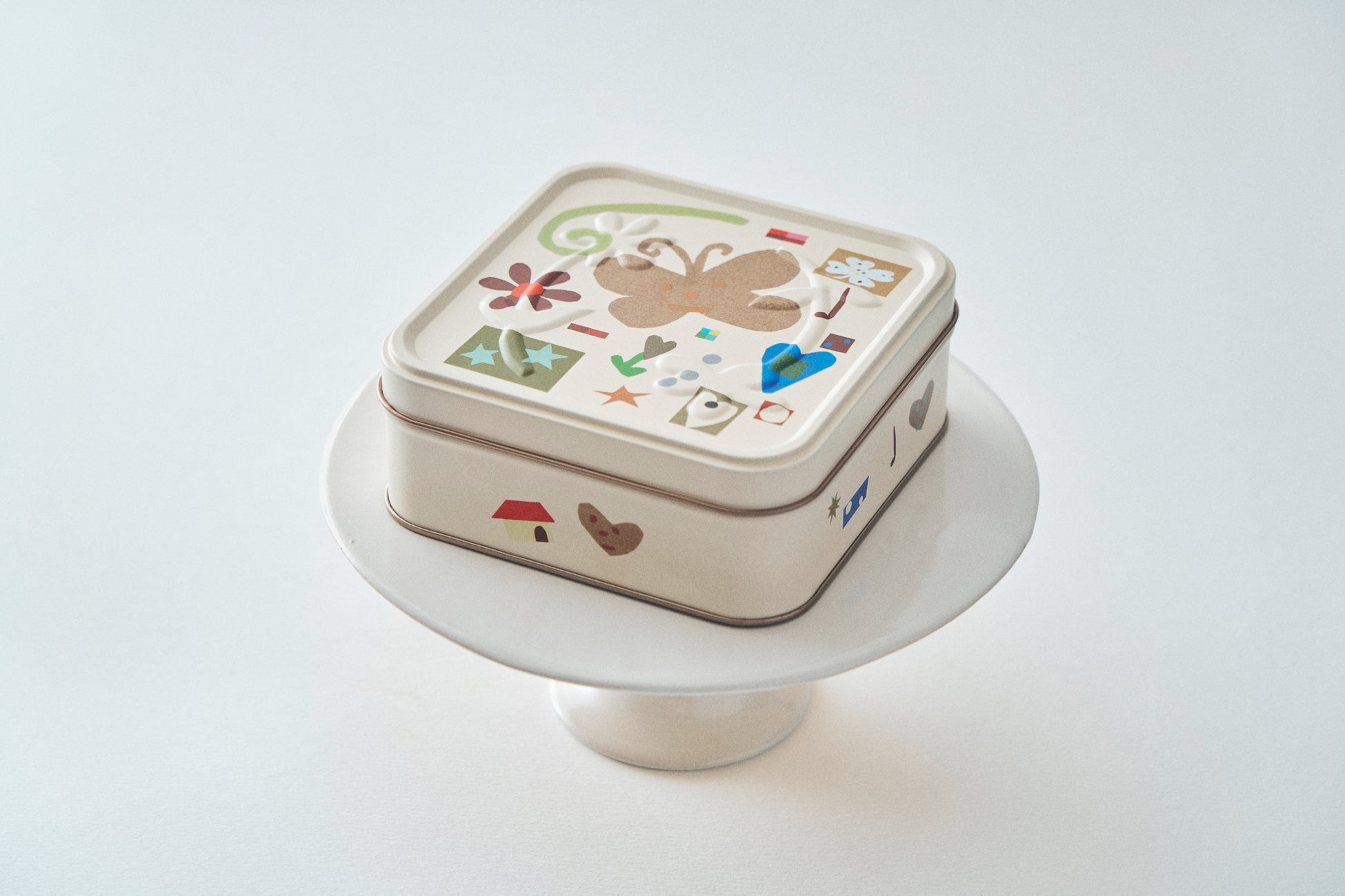 ちいさな記憶をコラージュするように詰め合わせた、やさしさあふれるビスケット缶が登場します。