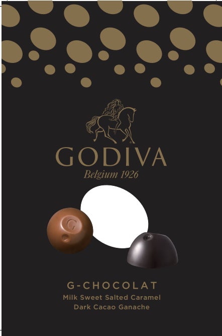 ゴディバのアイデンティティを表すGのマークと、ゴディバの代表的なチョコレート“クール”のハートの形を、チョコレートにさりげなくデザインしました。個包装タイプで手軽にゴディバのチョコレートをお楽しみいただけます。「ミルク スイート 塩キャラメル」と「ダーク カカオ ガナッシュ」の2種類を詰め合わせました。