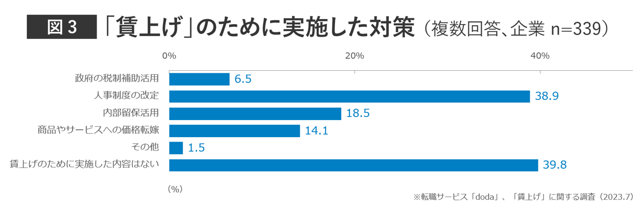 賃上げのため企業が実施した対策で最も多かったのは「人事制度改定」(38.9%)