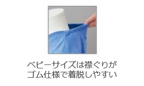 天竺素材で伸縮性があり、首のうしろがゴム仕様なのでお着替えが簡単です。