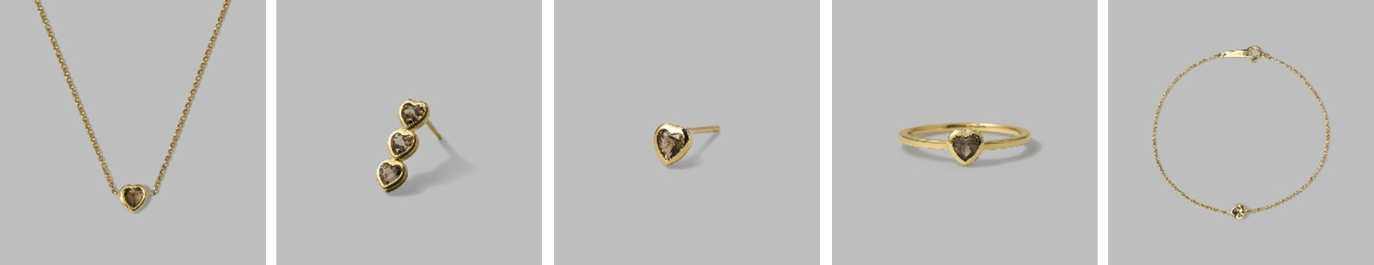 トレンドのハートモチーフを、「The Tidal」らしくモードに描いたシリーズです。スモーキークォーツのブラウンカラーがハートモチーフを大人の愛らしい雰囲気にクラスアップ。これからの秋冬の季節のコーディネートにも馴染みやすいカラーは、ジュエリーを身に着ける度に気持ちが高まるようなアイテムです。