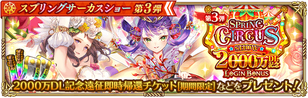 ◆「2000万DL記念!スプリングサーカスショー第3弾ログインボーナス!」を開催!!