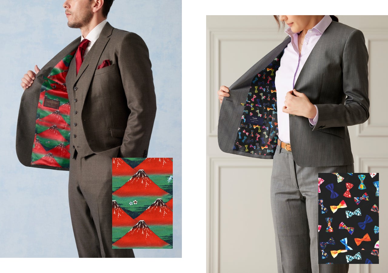インバウンドのお客様にも好まれる、日本らしさや遊び心を取り入れたスーツ裏地を新展開。