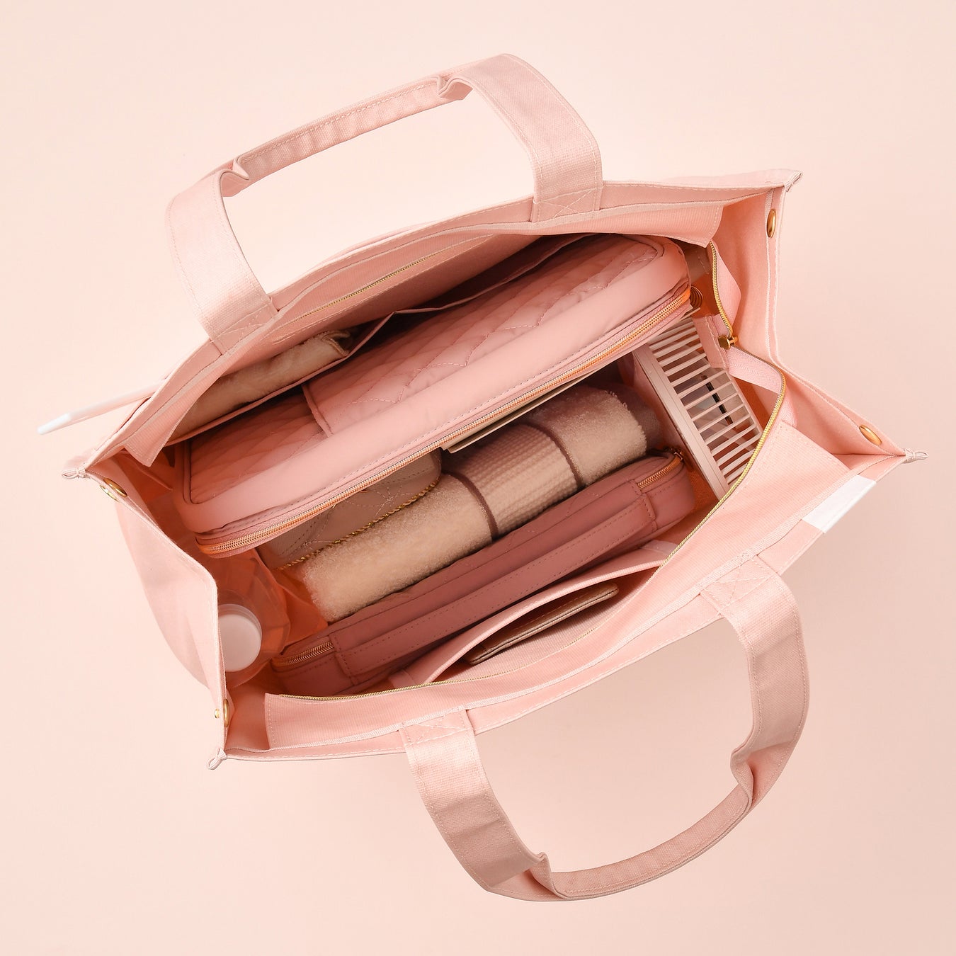 また、ポケットが2つ増え、内外合計7つのポケットがあるので、アイテム別に細かく分けて収納することができるのが嬉しいポイントです。ペットボトルや折りたたみ傘などを立てたまま持ち運びできる使いやすさを重視したこだわりの内ポケットや、出し入れの多いハンカチやポーチ、ハンディファンなどをサッとすぐに取り出しやすいように設計された外ポケットも様々なシーンで活躍します。収納力抜群なのでマザーズバッグとしてもおすすめです。