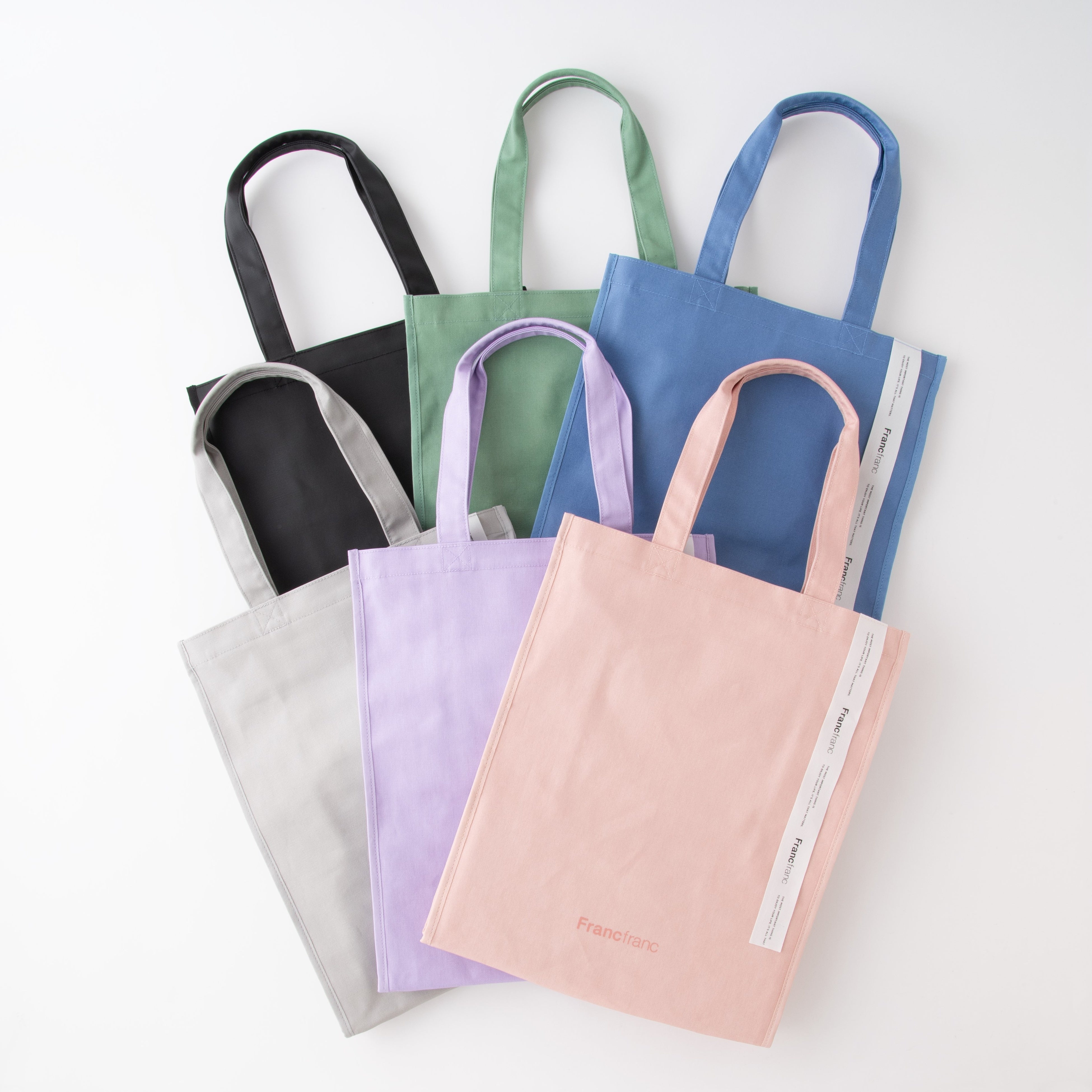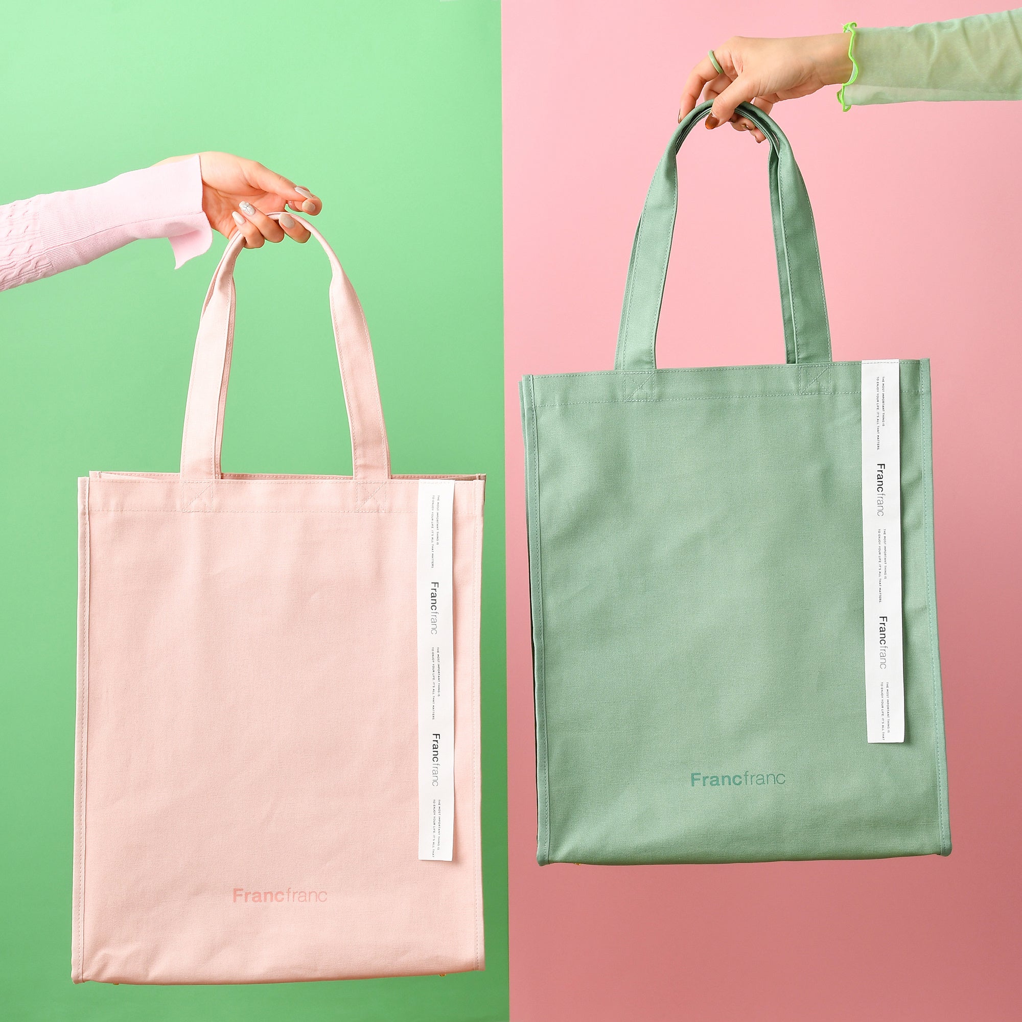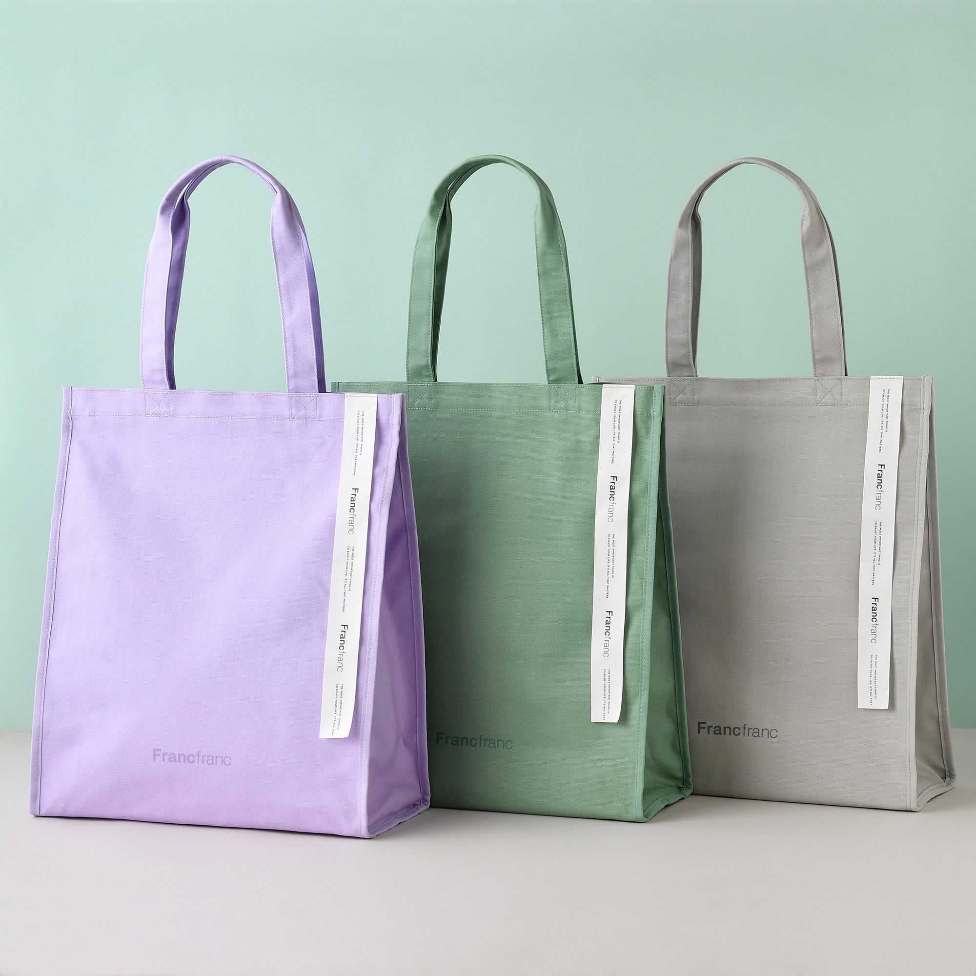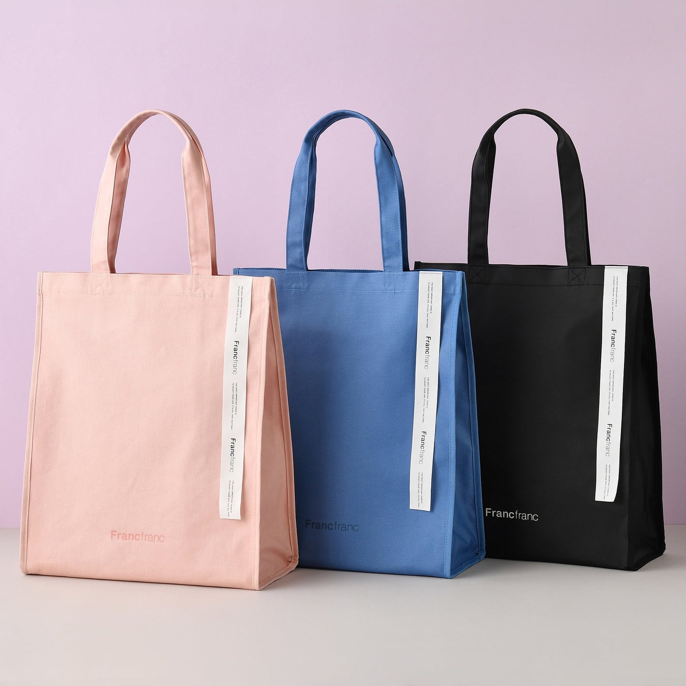 幅広いシーンやファッションに合わせやすく、トレンド感あるカラーバリエーションに加え、機能性と収納力に優れたトートバックです。縦長ですっきり収納できる使いやすさと、さりげなく施されたFrancfrancのロゴ入りリボンがアクセントになっています。人気のデザインはそのままに、機能性がアップしました。