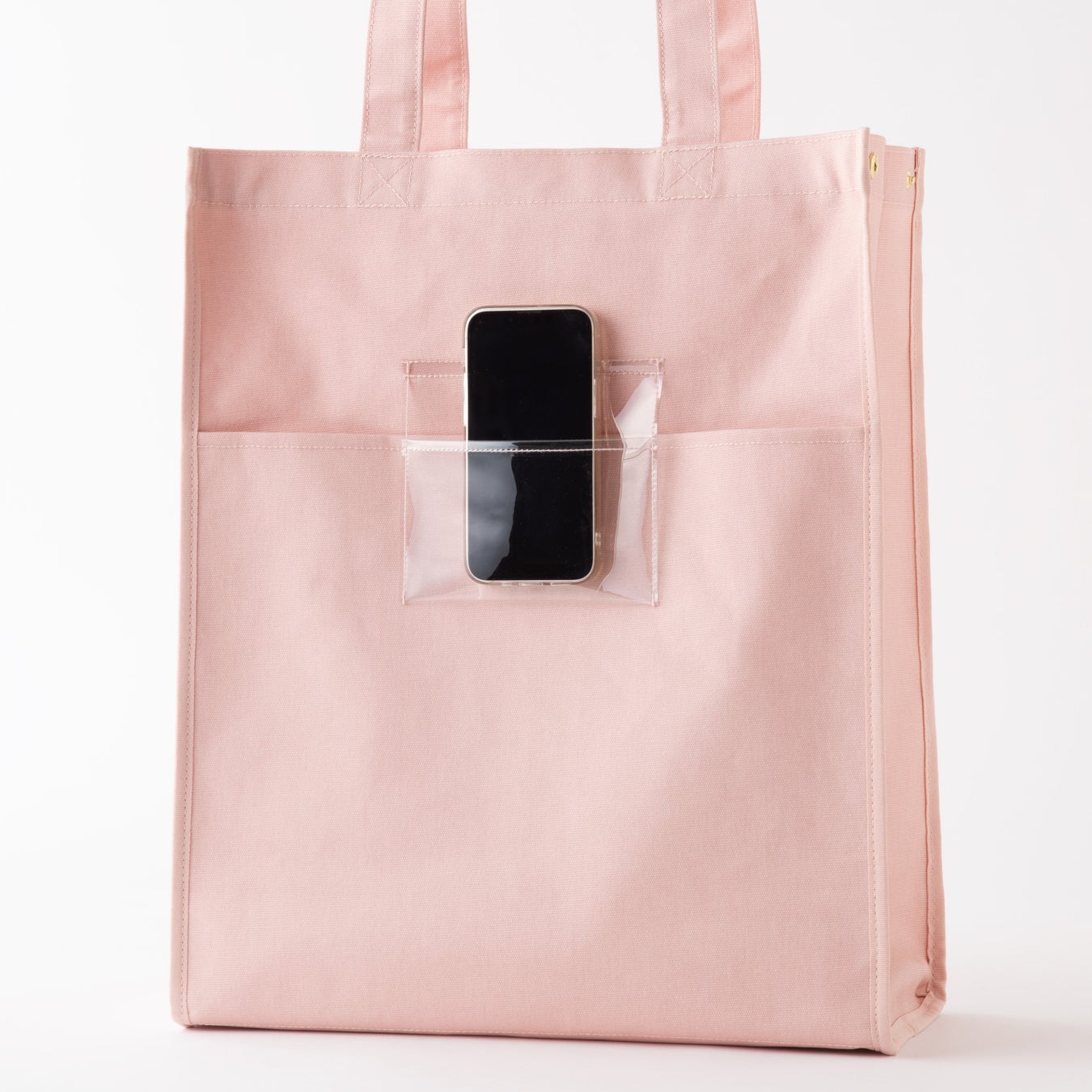 表側には新たにクリアポケットが付き、スマートフォンを入れてセルフ撮影もできるようになりました。