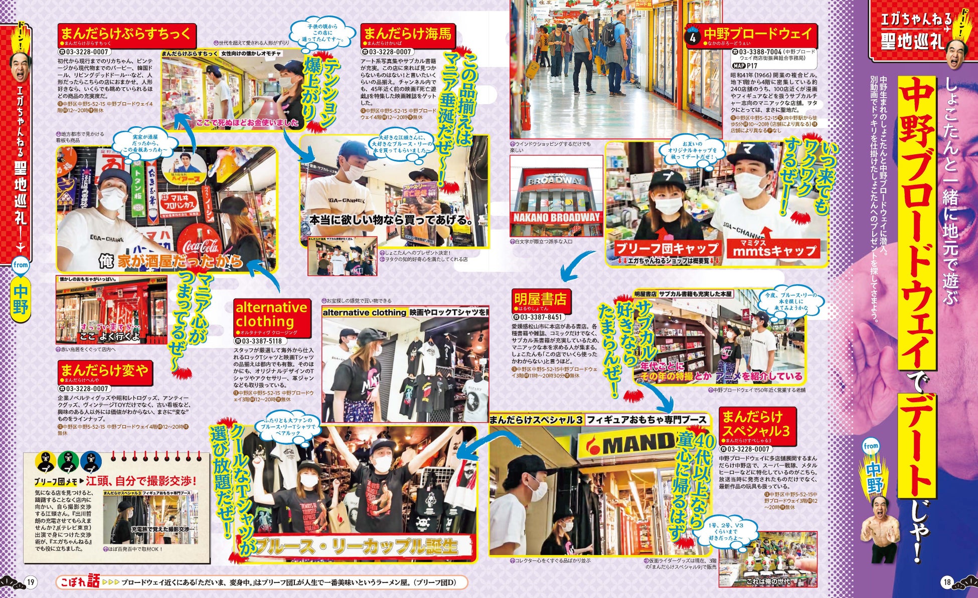また、動画を振り返る「Dのひとこと」や「ブリーフ団メモ」、るるぶ編集部がブリーフ団のみなさんに聞いた動画の裏側がわかる「こぼれ話」も掲載!さらには中川翔子さんをはじめ、宮迫博之さんやウド鈴木さんなど、「エガちゃんねる」に出演された著名人の方とのコラボレーションの様子もロケ地とともに紹介しています。