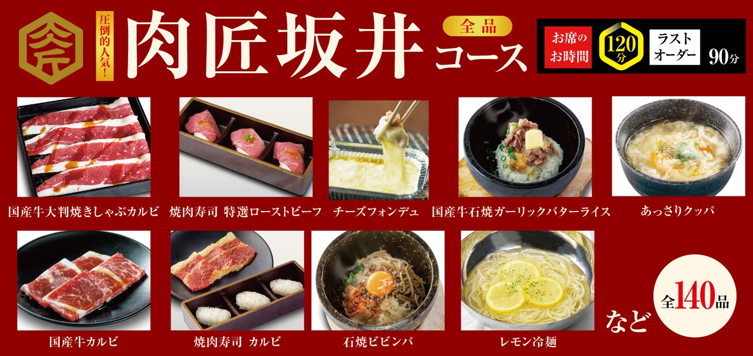 肉匠坂井コース〈全140品食べ放題〉120分間(ラストオーダー90分)