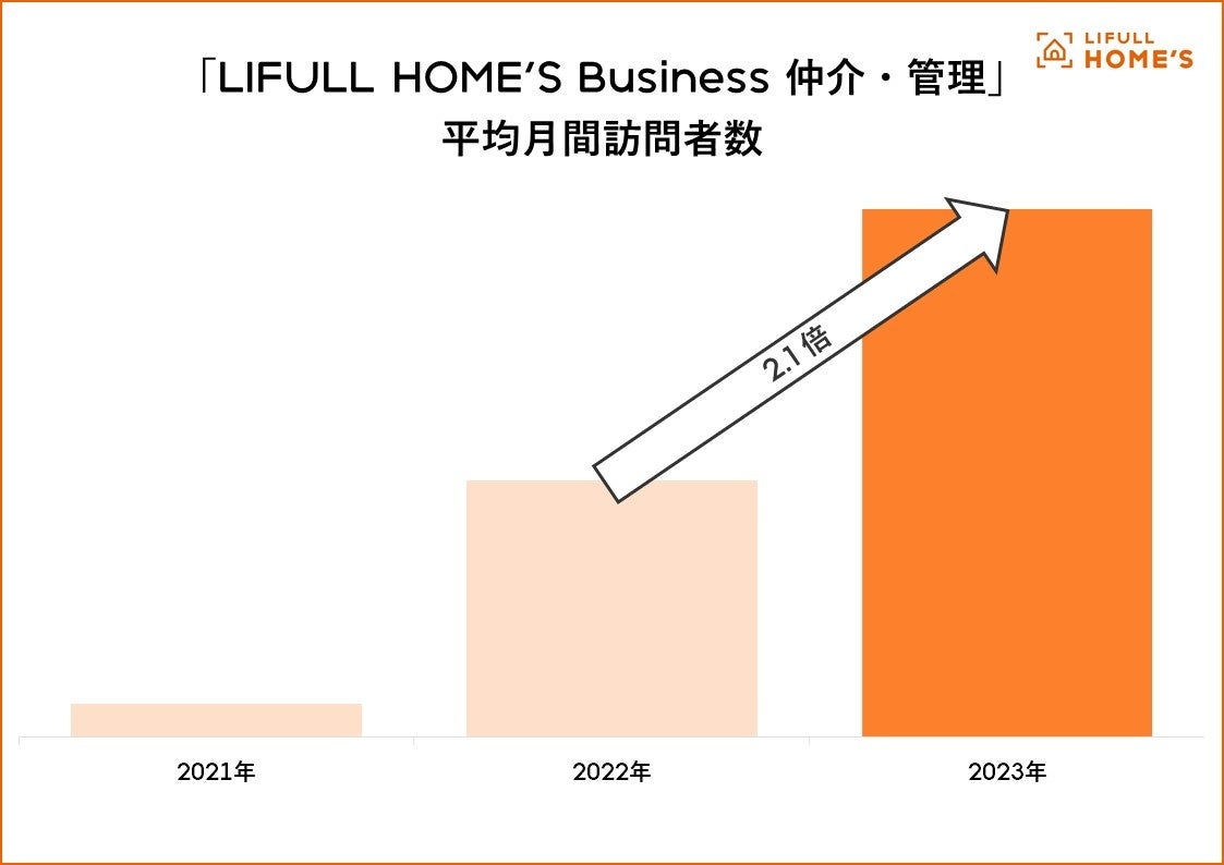 LIFULL HOME'Sでは、不動産の仲介や賃貸業務管理にかかわる「会社や人」向けに、情報やサービスを提供するメディア「LIFULL HOME'S Business 仲介・管理」を2021年7月にリリースしました。メディアへの平均月間訪問者数は、前年対比2.1倍(※1)と急成長を遂げています。