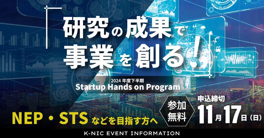 株式会社ツクリエ(本社:東京都千代田区 代表取締役:鈴木英樹 以下、ツクリエ)が川崎市から運営受託するKawasaki-NEDO Innovation Center(所在地:神奈川県川崎市 以下、K-NIC)は、ディープテック領域で具体的な技術シーズがあり、研究開発要素のある事業での起業や、事業の育成を目指す方を対象にした「Kawasaki-NEDO Innovation Center Startup Hands on Program(スタートアップハンズオンプログラム)」の応募を受付中です。